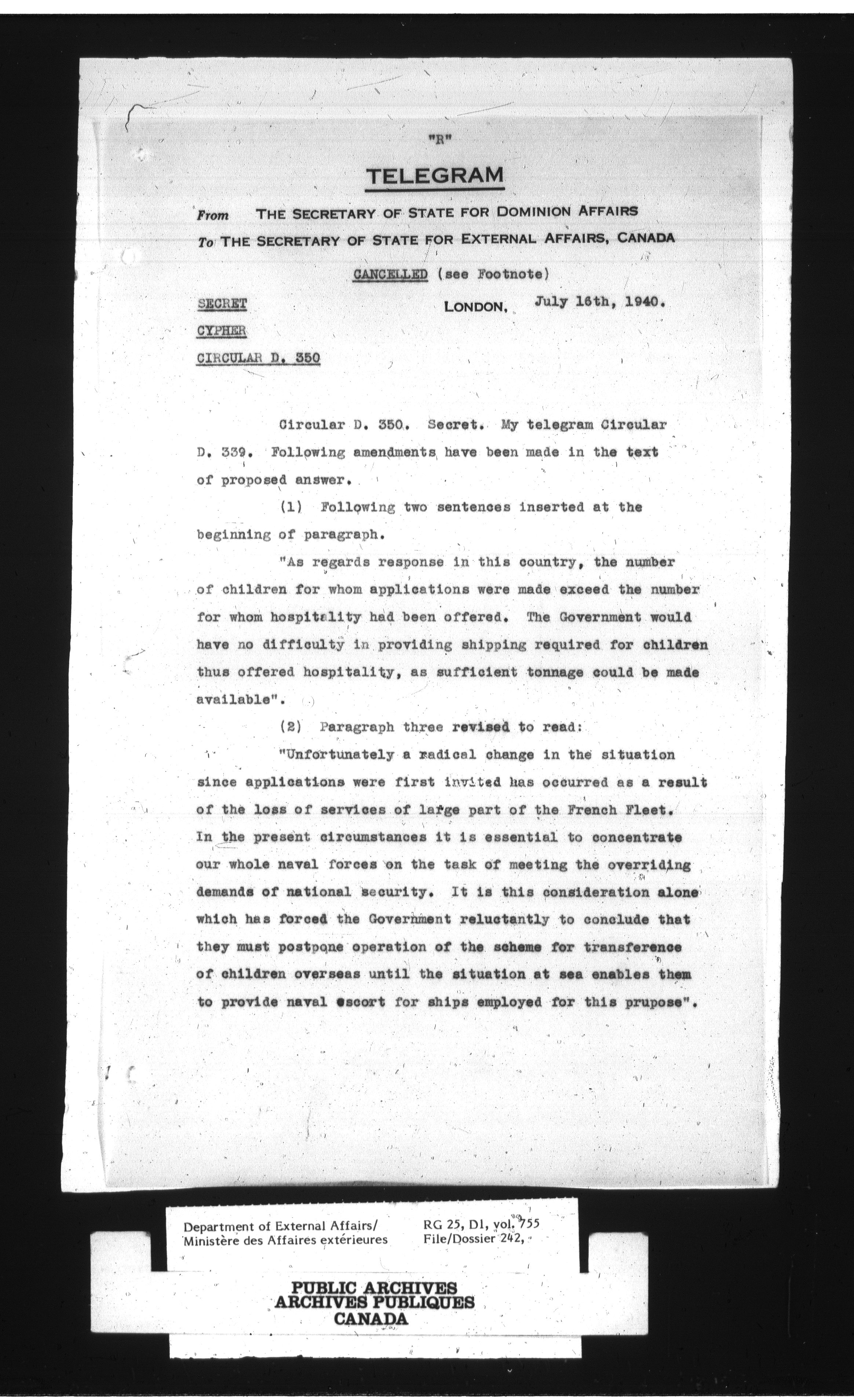 Department of External Affairs : Office of the Under-Secretary of State for External Affairs : T-1763