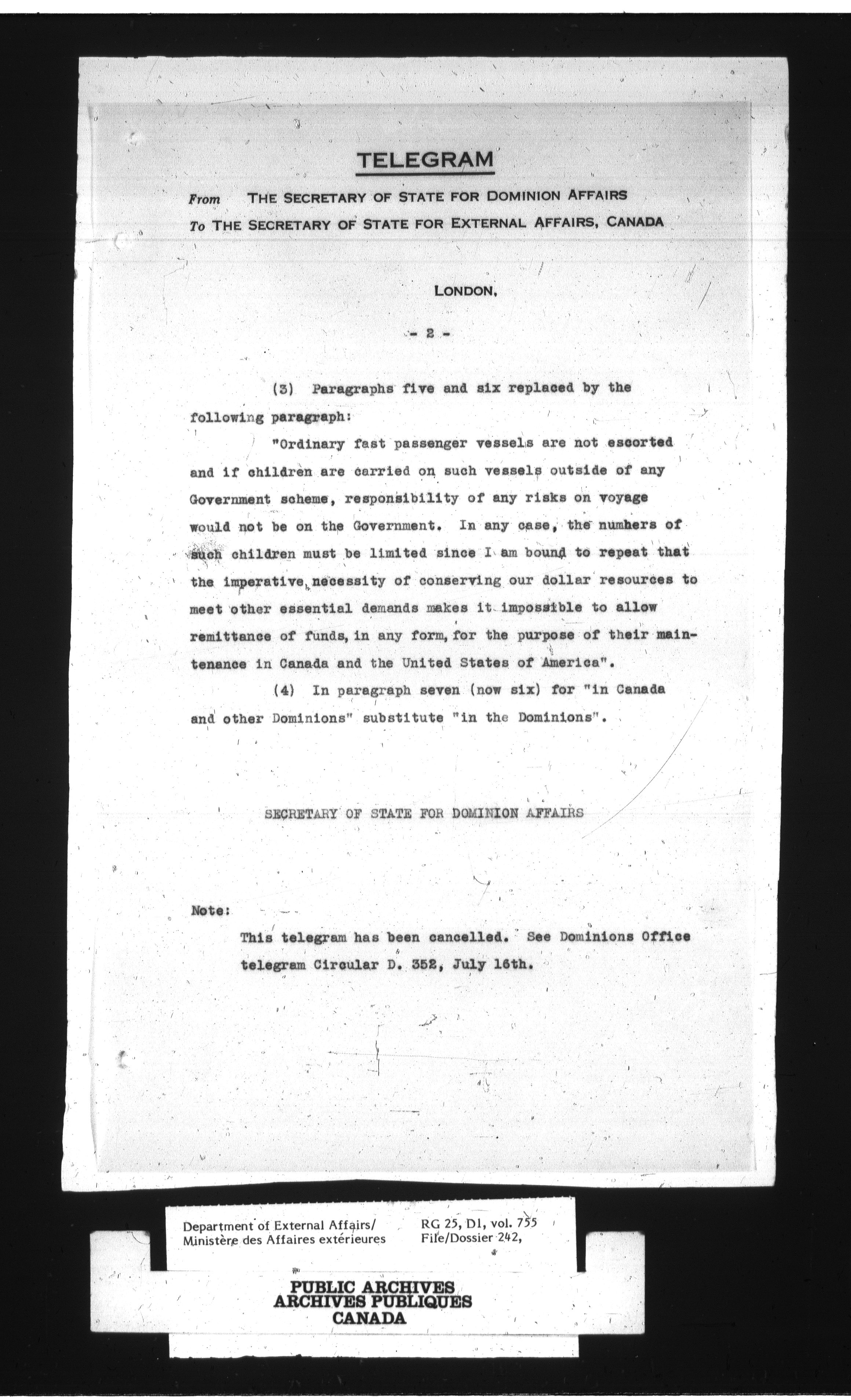 Department of External Affairs : Office of the Under-Secretary of State for External Affairs : T-1763