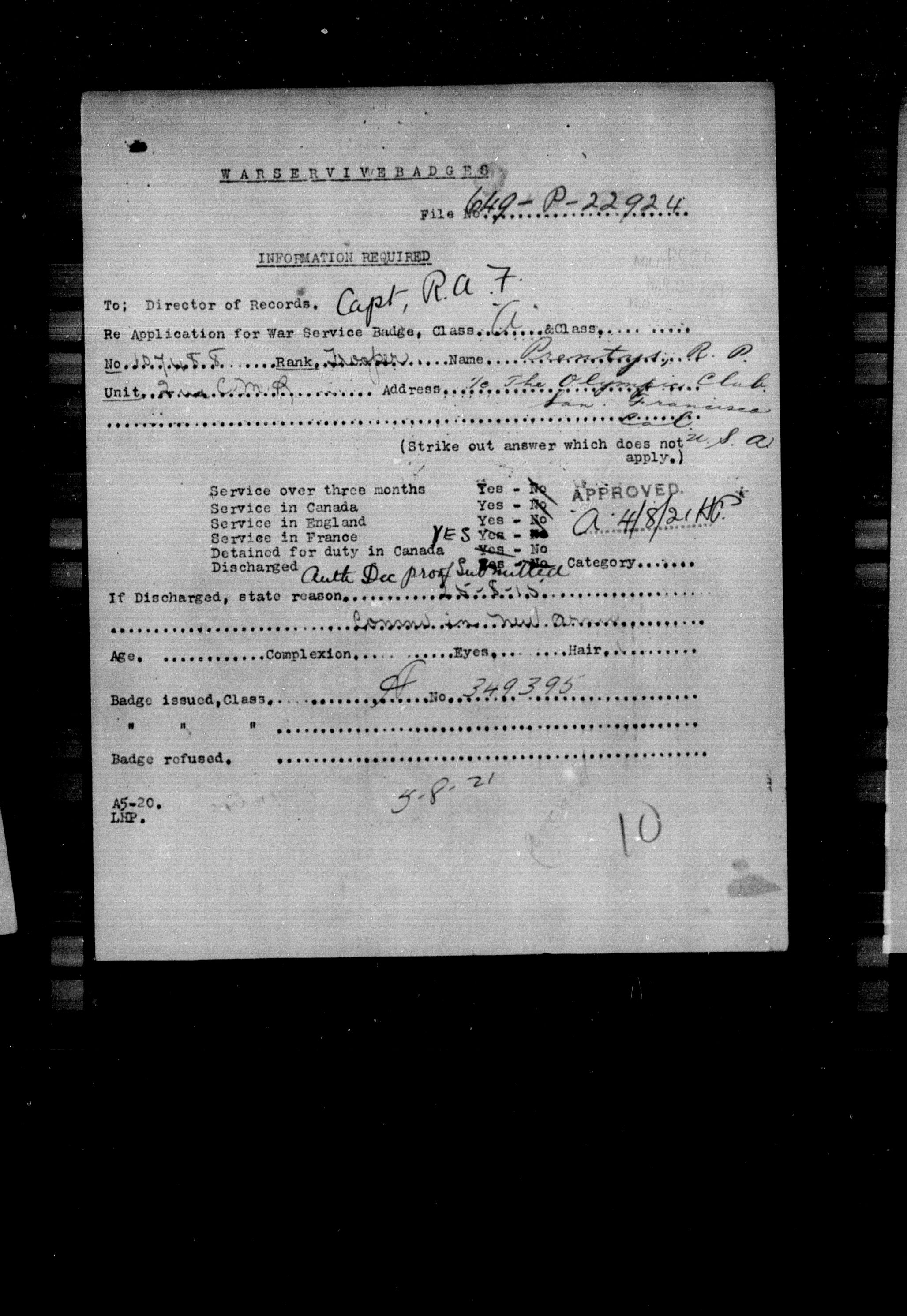 Militia and Defence personnel files [1870-1938] - 17649