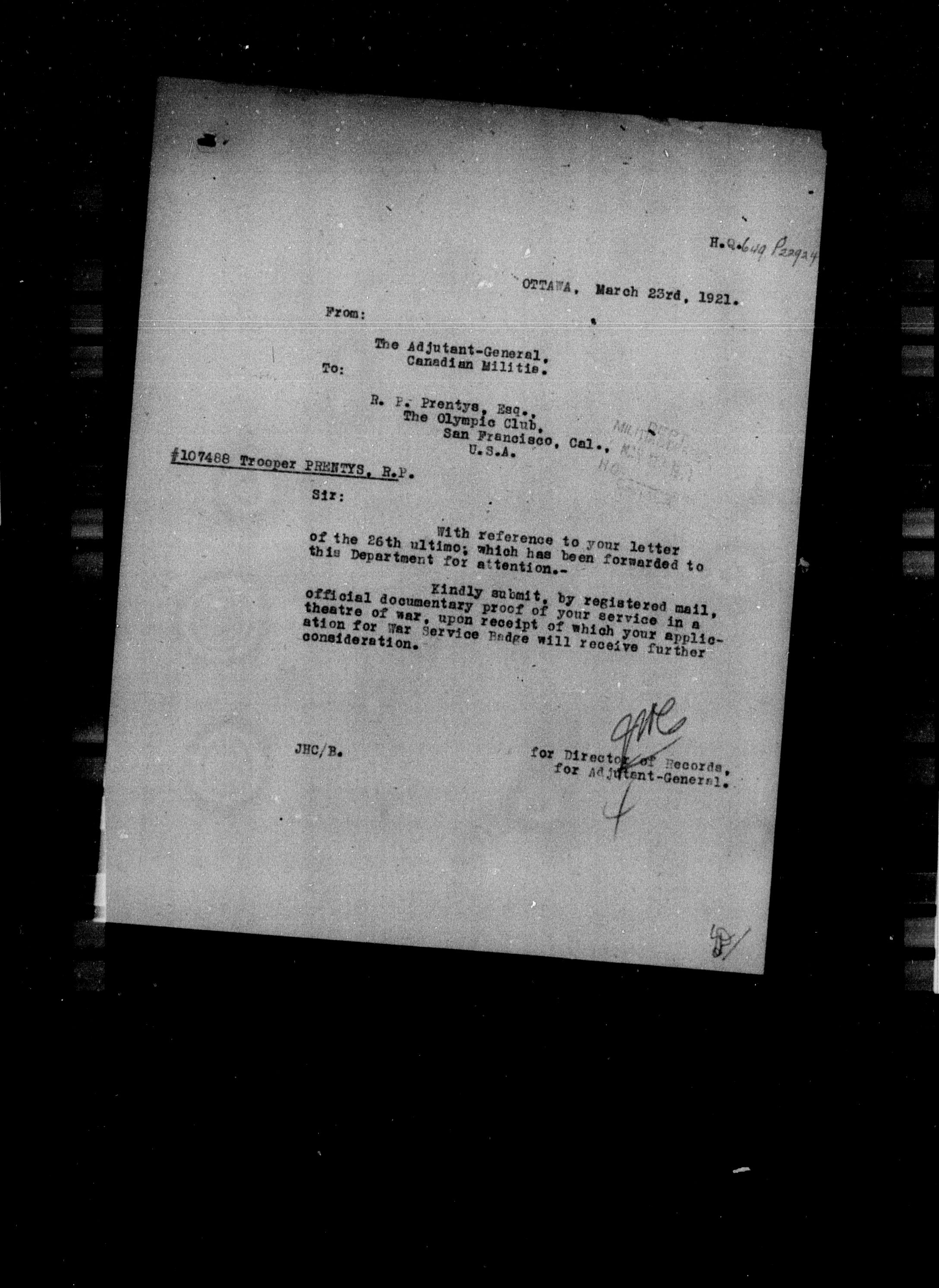 Militia and Defence personnel files [1870-1938] - 17649