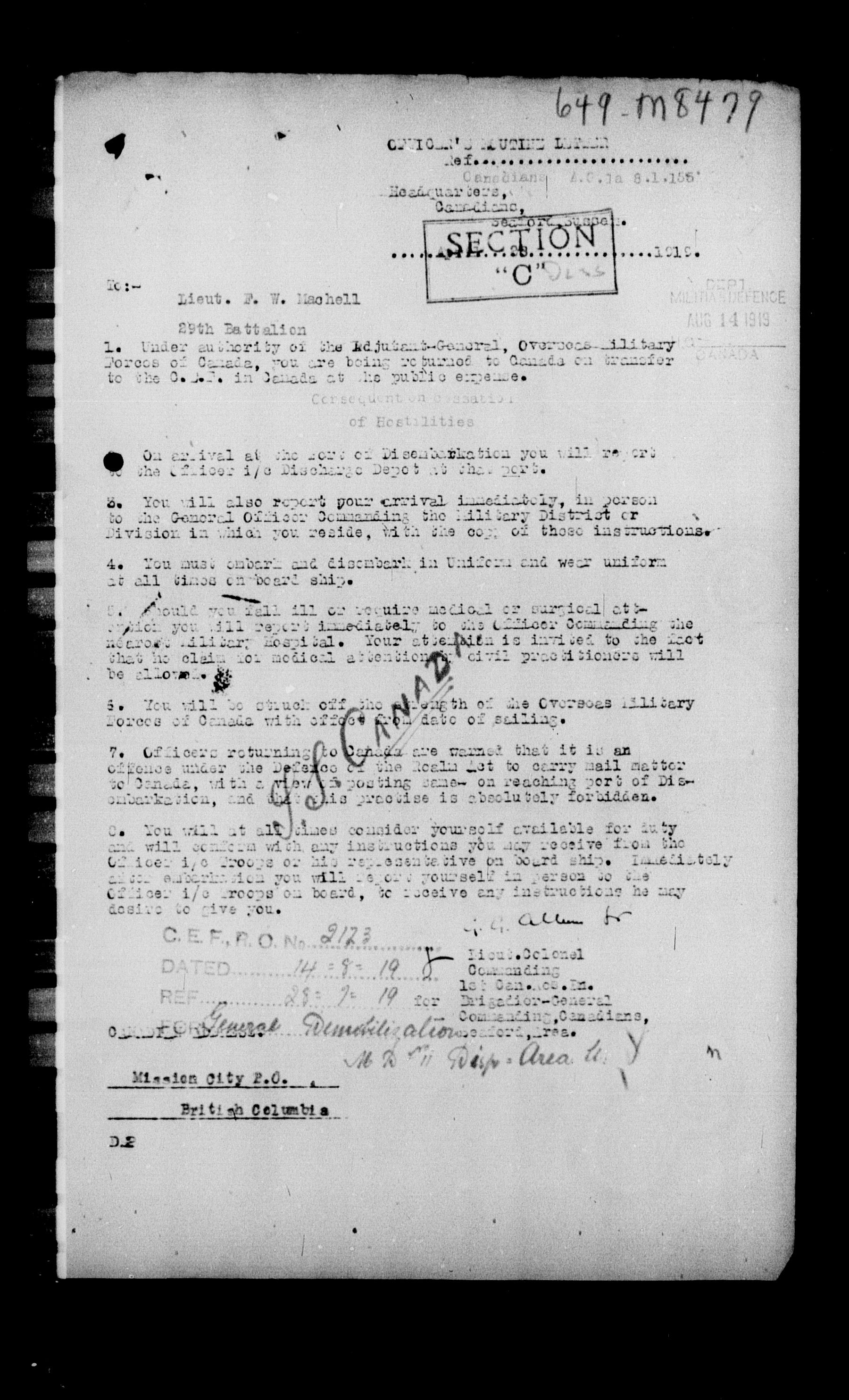 Militia and Defence personnel files, (1870-1948) - 17655