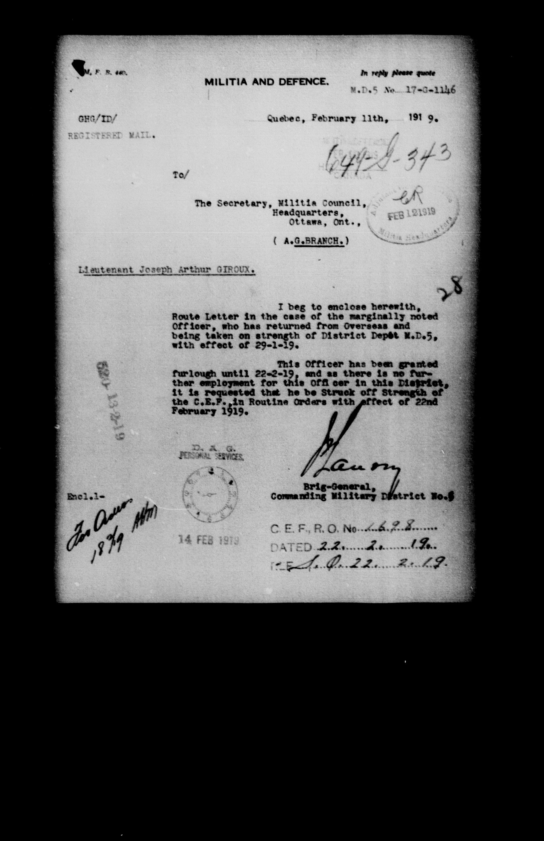 Militia and Defence personnel files, (1870-1948) - 17656