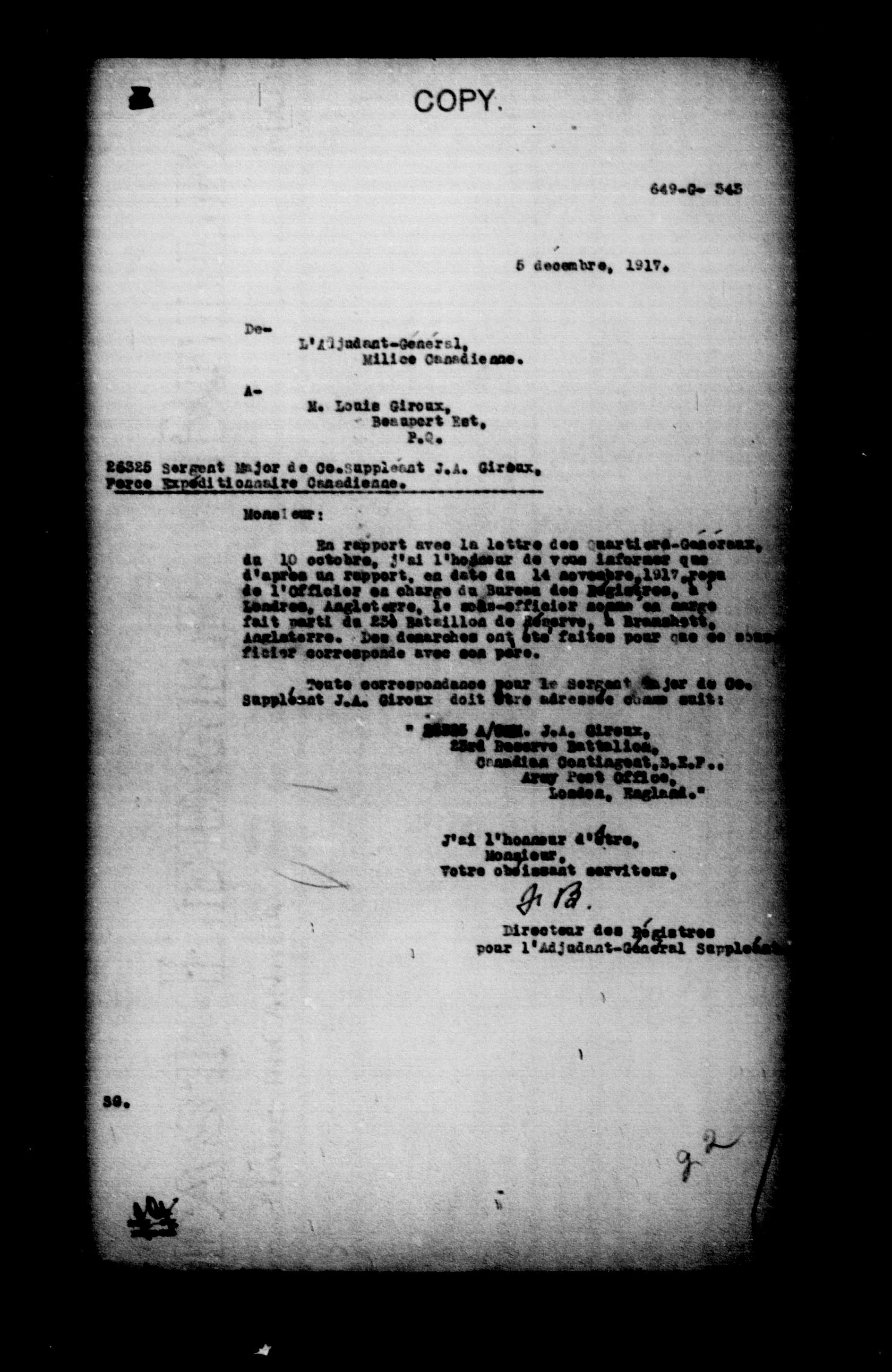 Militia and Defence personnel files, (1870-1948) - 17656