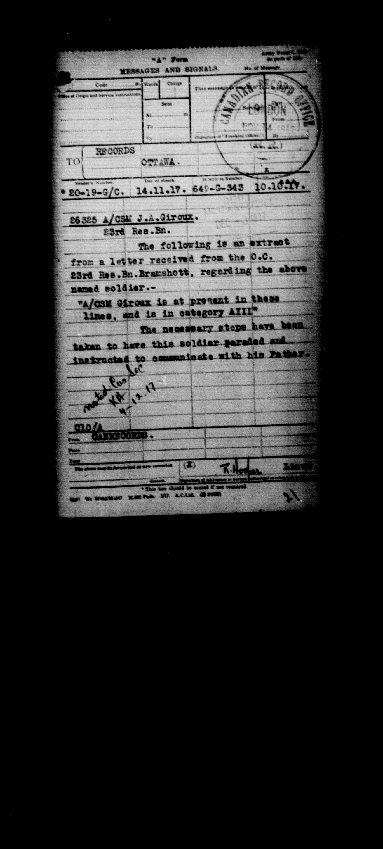 Militia and Defence personnel files, (1870-1948) - 17656