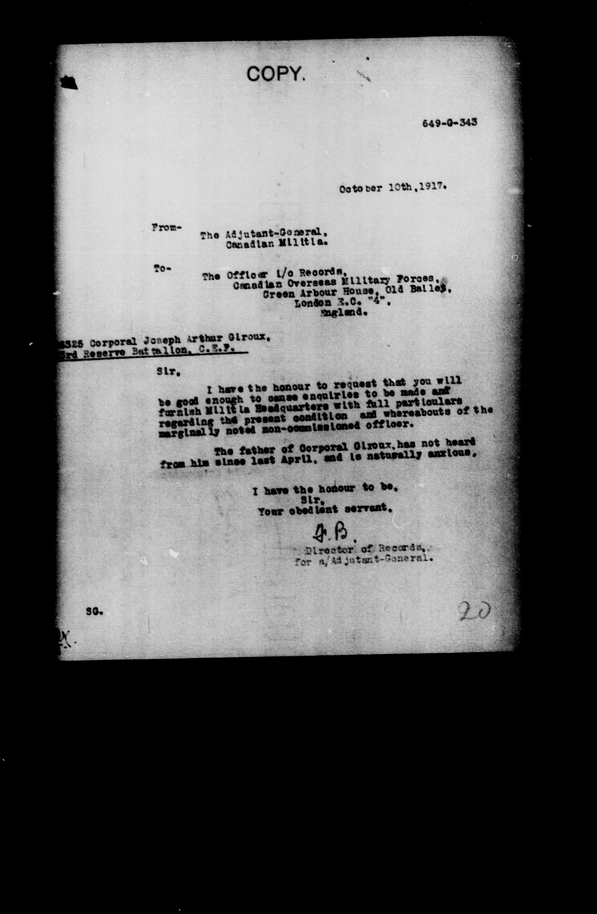 Militia and Defence personnel files, (1870-1948) - 17656