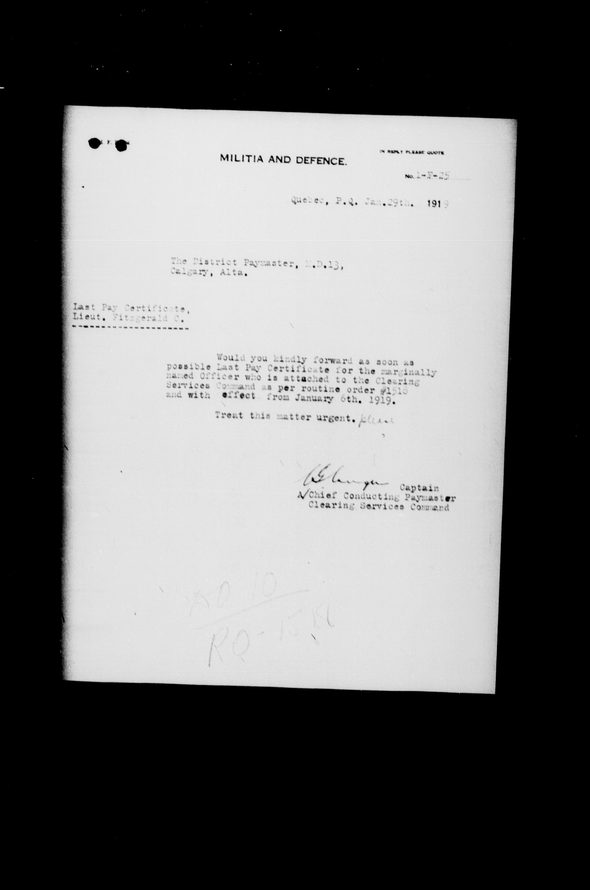 Militia and Defence personnel files, (1870-1948) - 17656