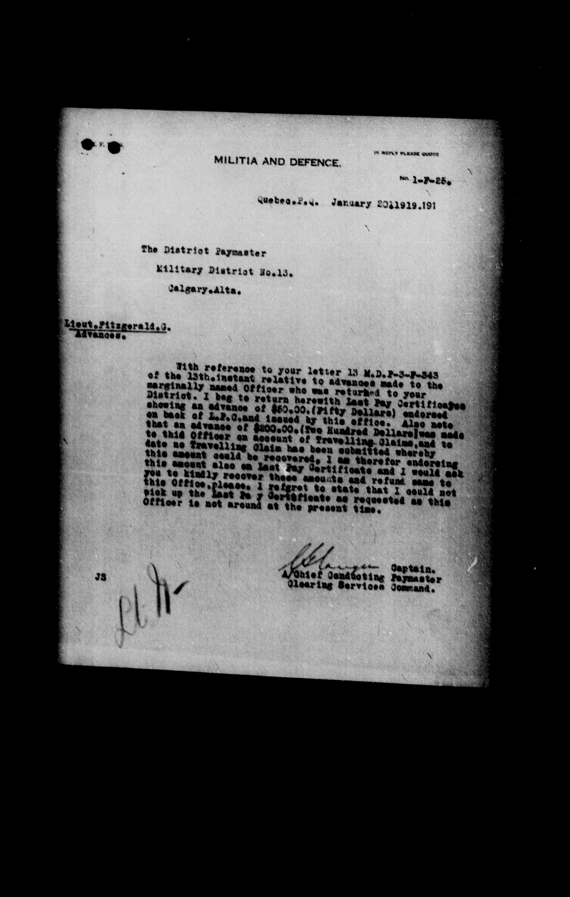 Militia and Defence personnel files, (1870-1948) - 17656