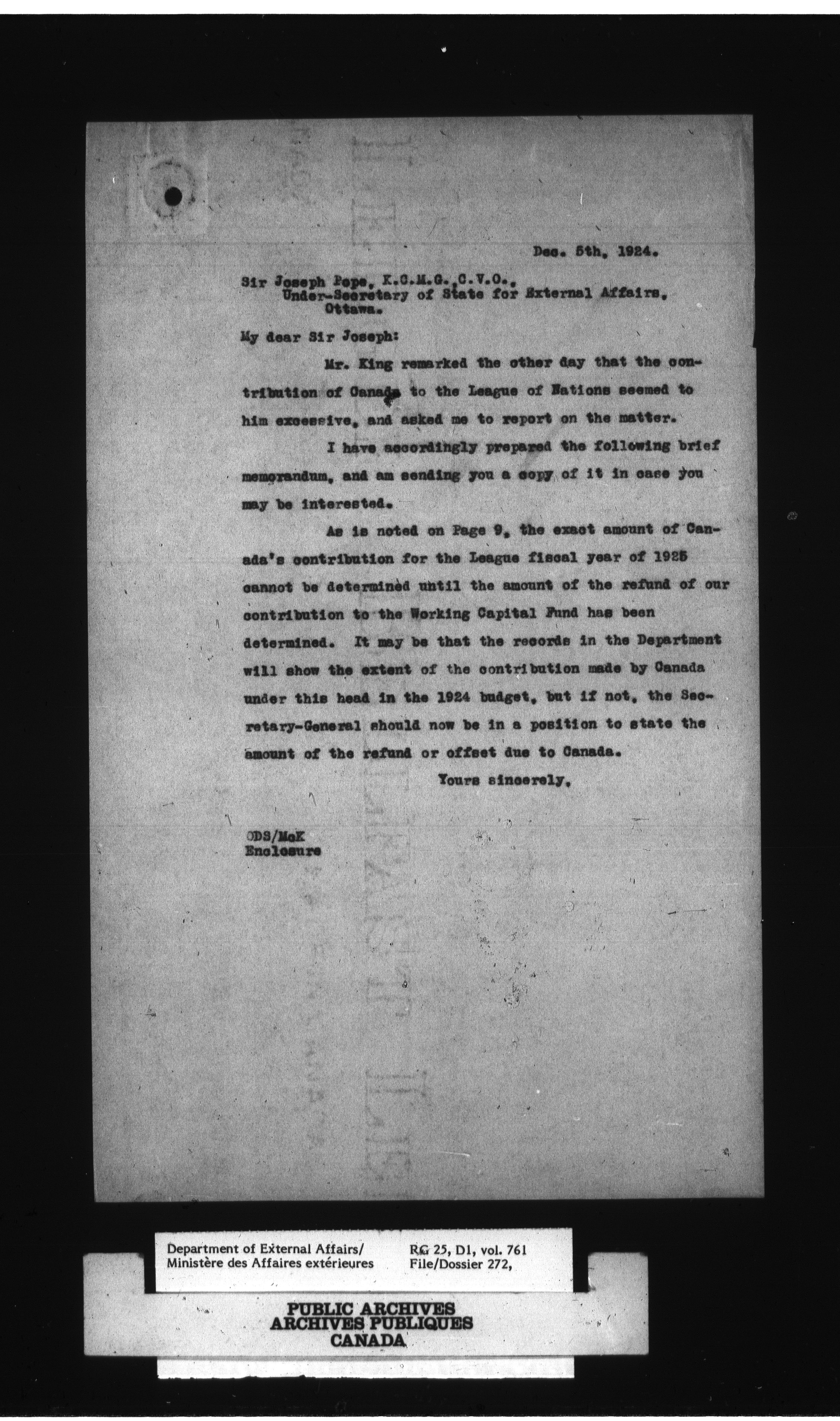 Department of External Affairs : Office of the Under-Secretary of State for External Affairs - 1766