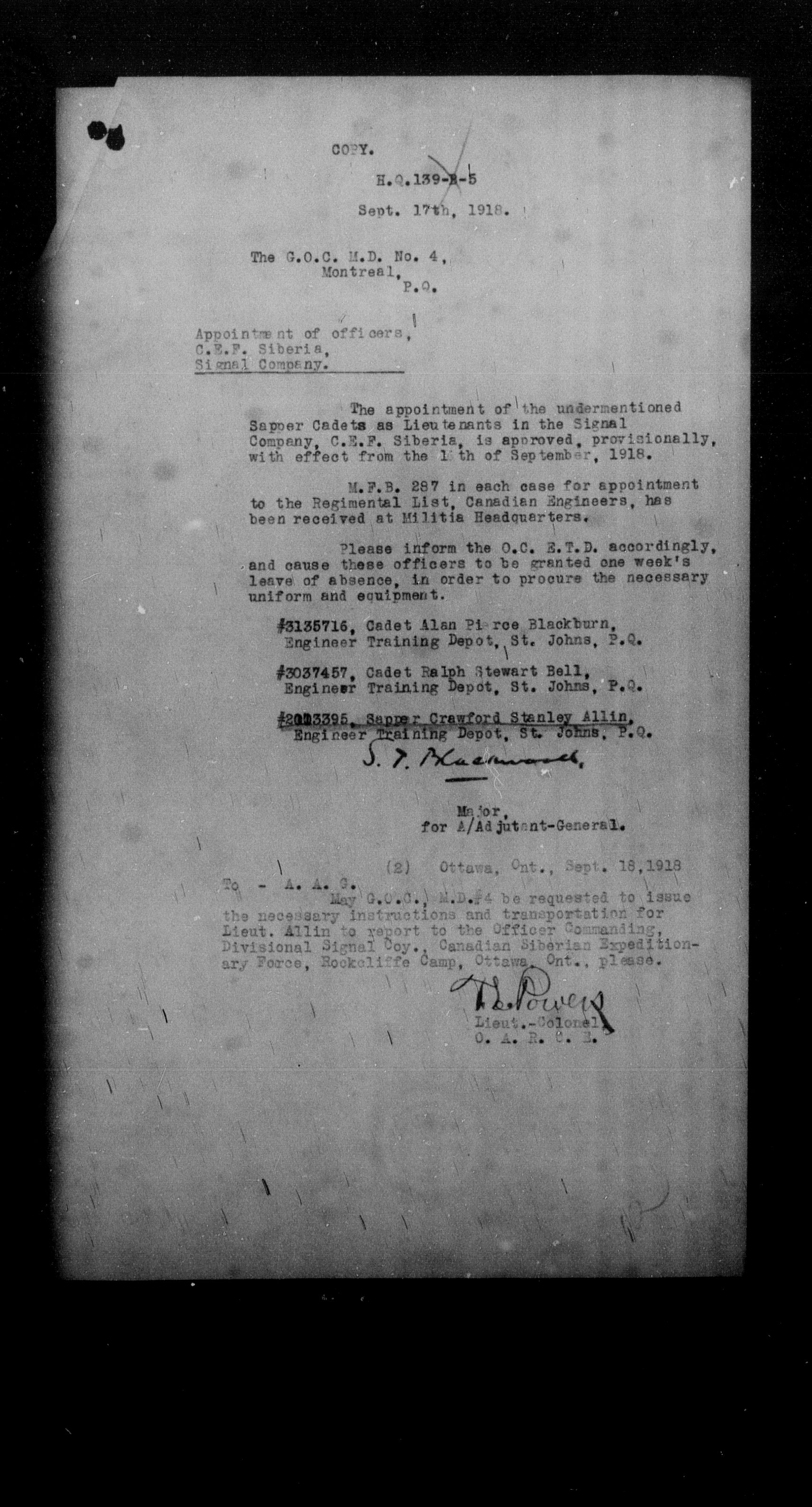 Militia and Defence personnel files [1870-1938] - 17666