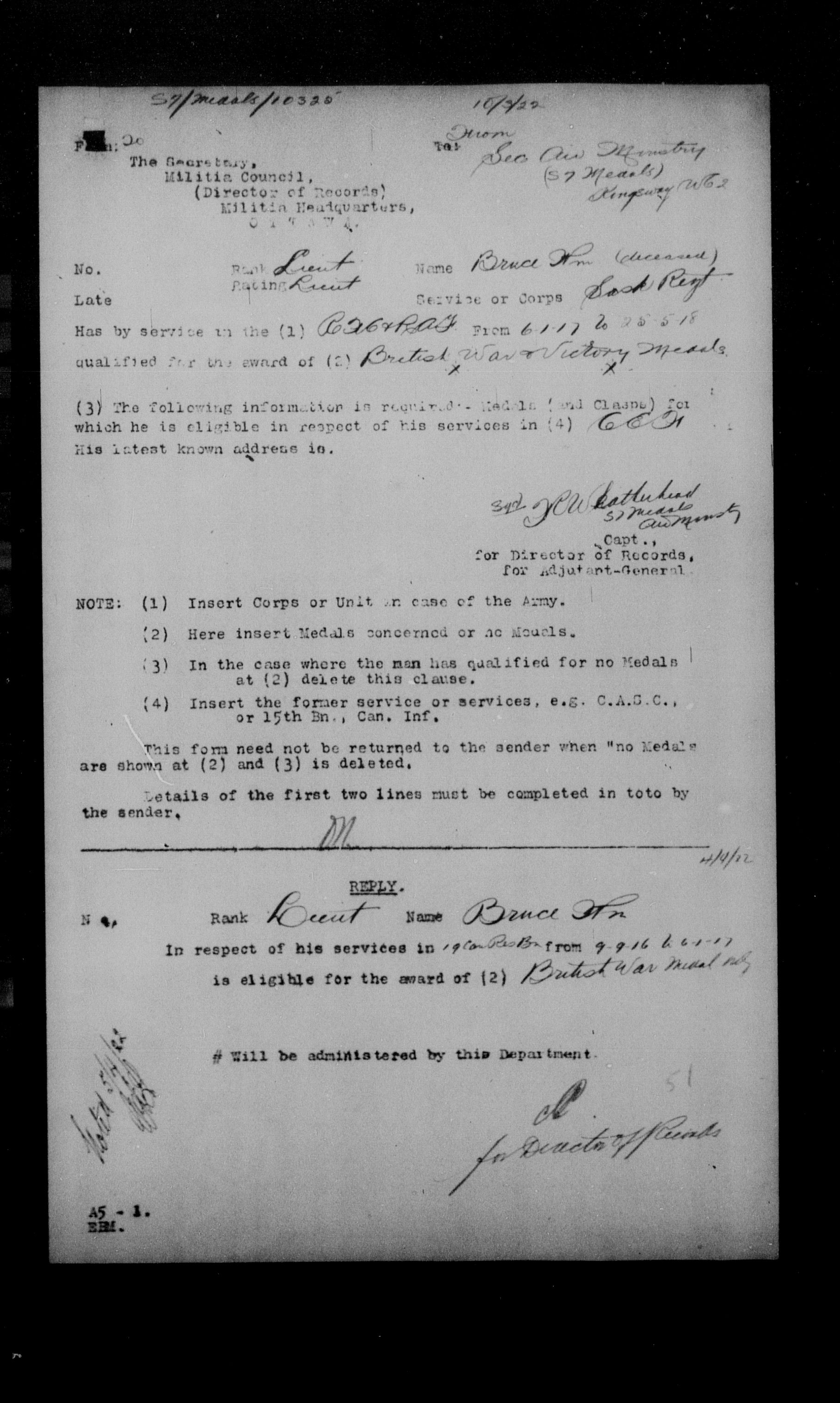 Militia and Defence personnel files [1870-1938] - 17673