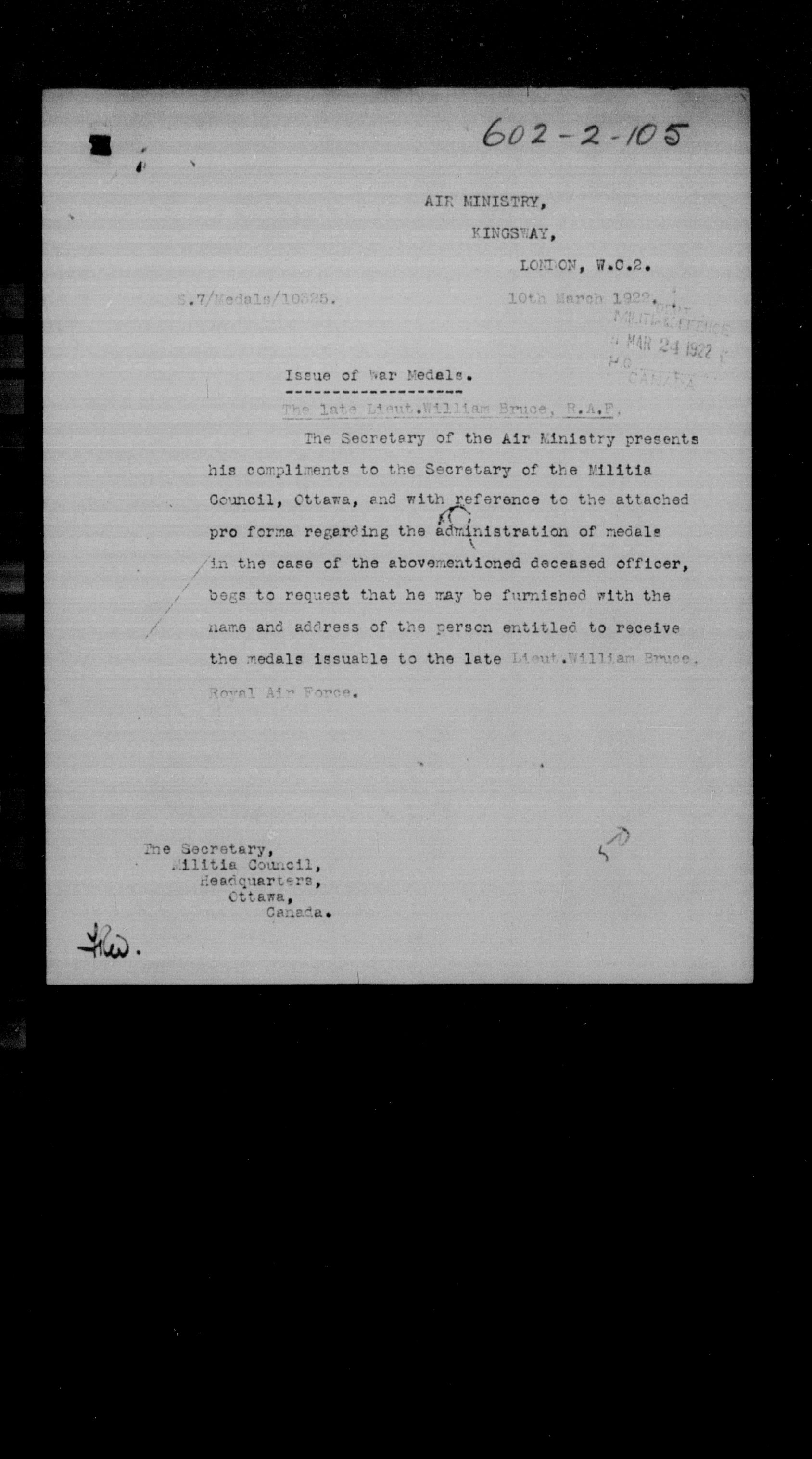 Militia and Defence personnel files [1870-1938] - 17673