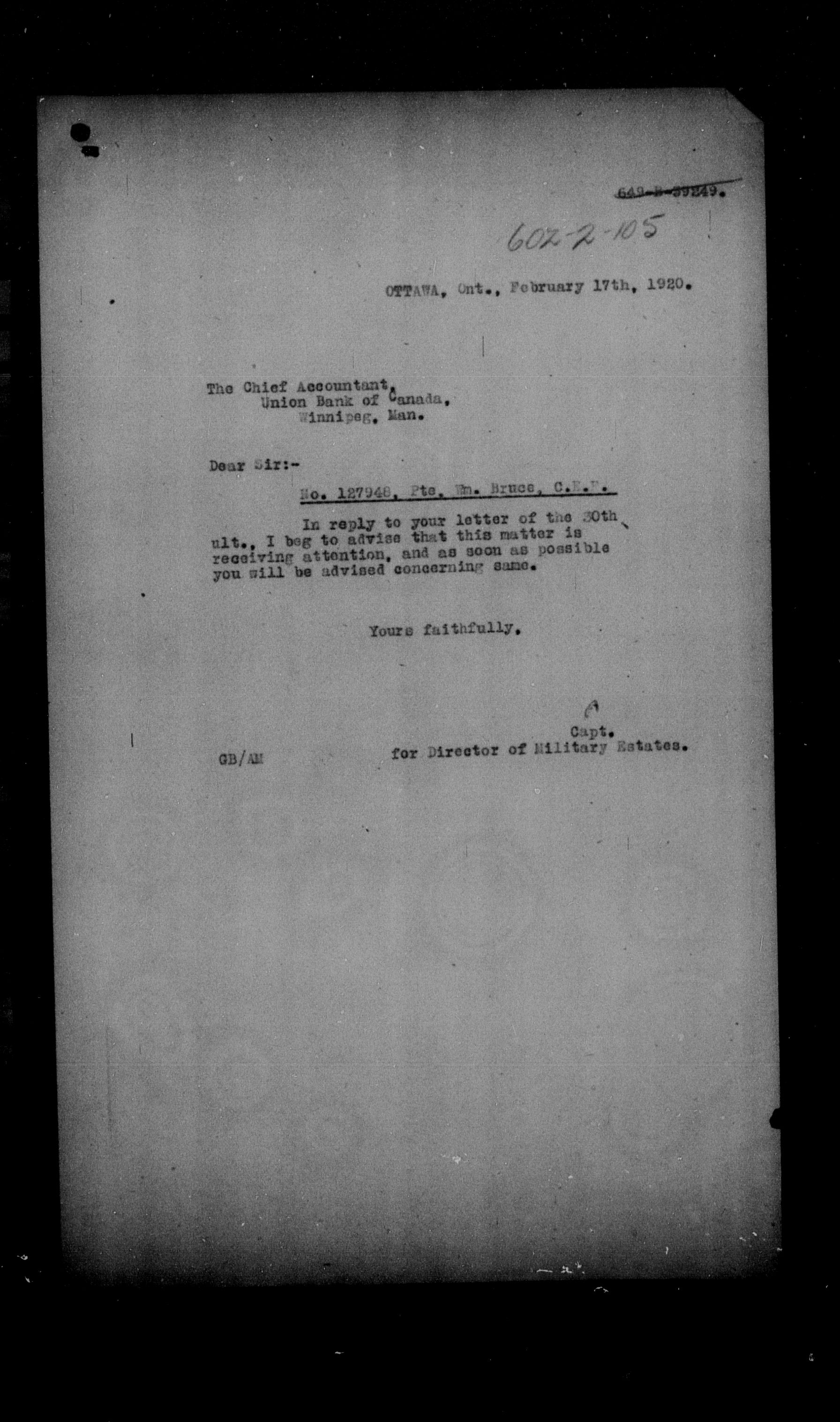 Militia and Defence personnel files [1870-1938] - 17673