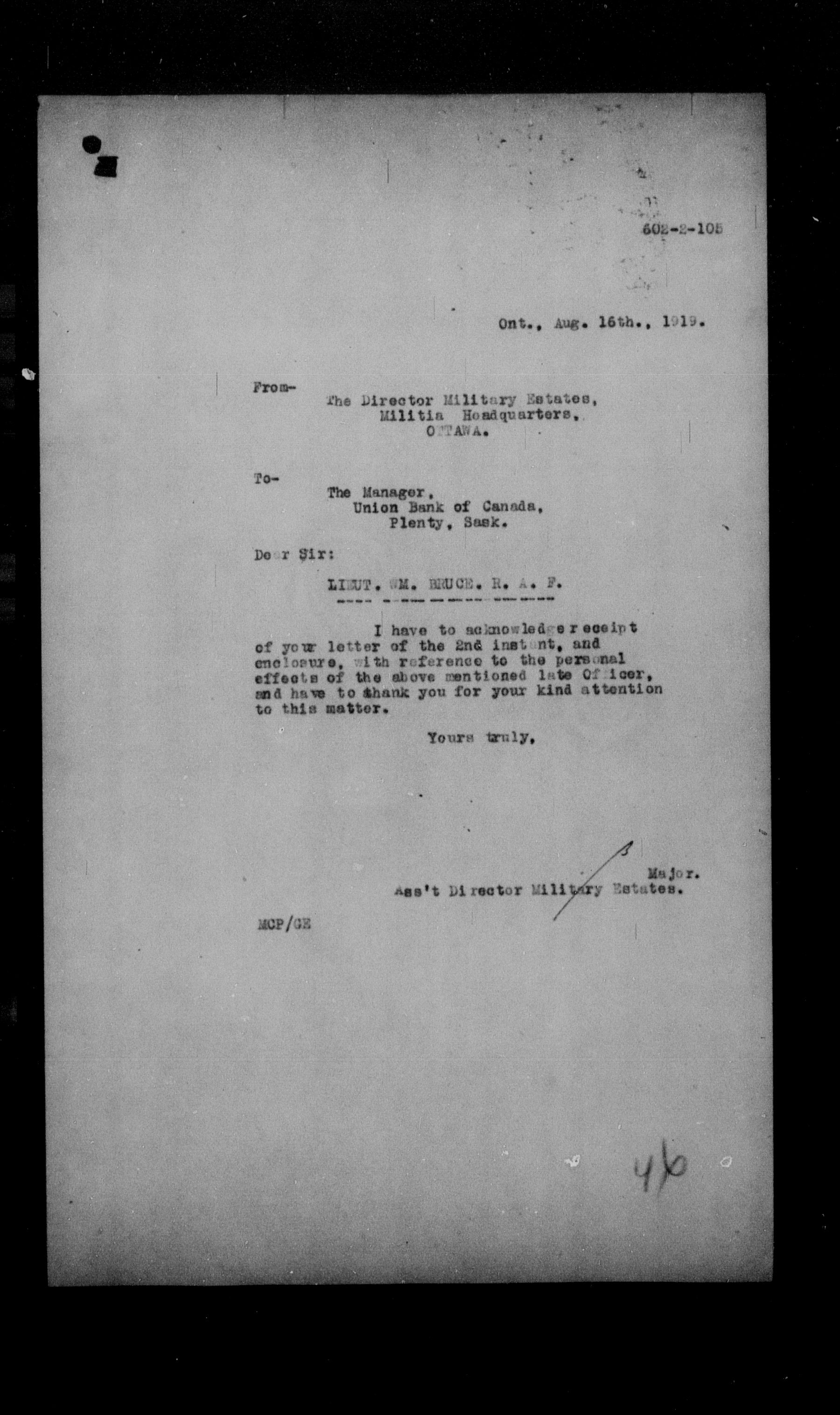 Militia and Defence personnel files [1870-1938] - 17673