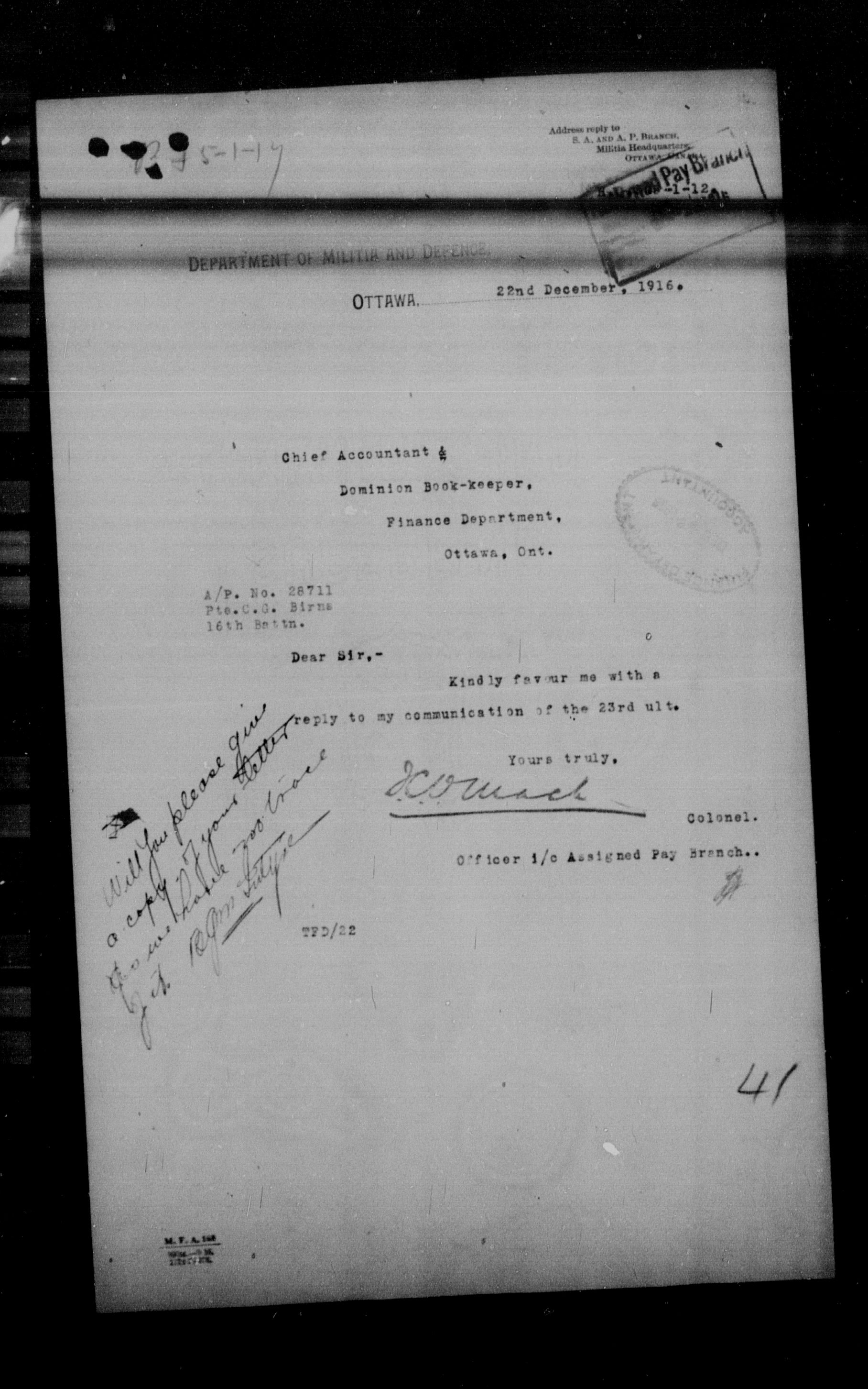Militia and Defence personnel files [1870-1938] - 17673