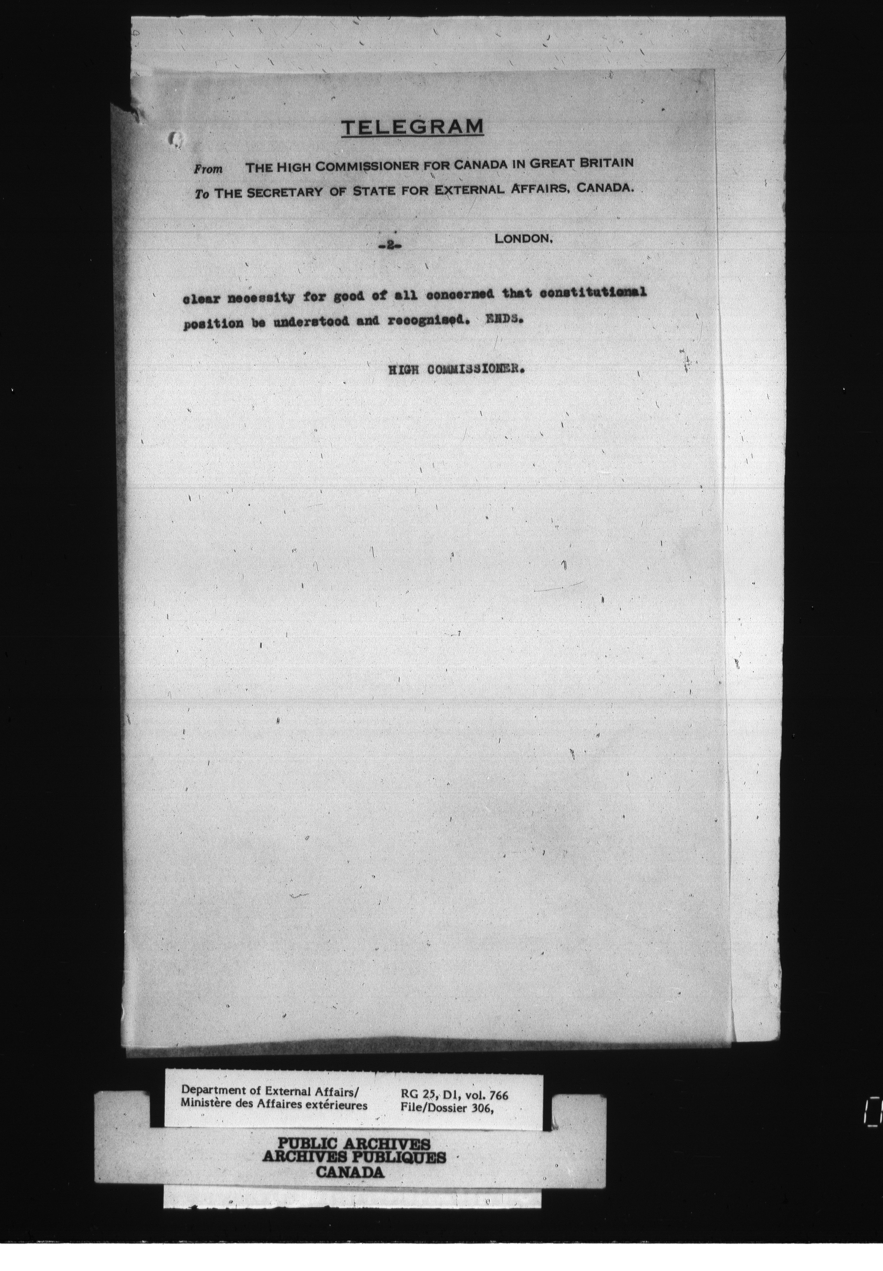 Department of External Affairs : Office of the Under-Secretary of State for External Affairs : T-1768