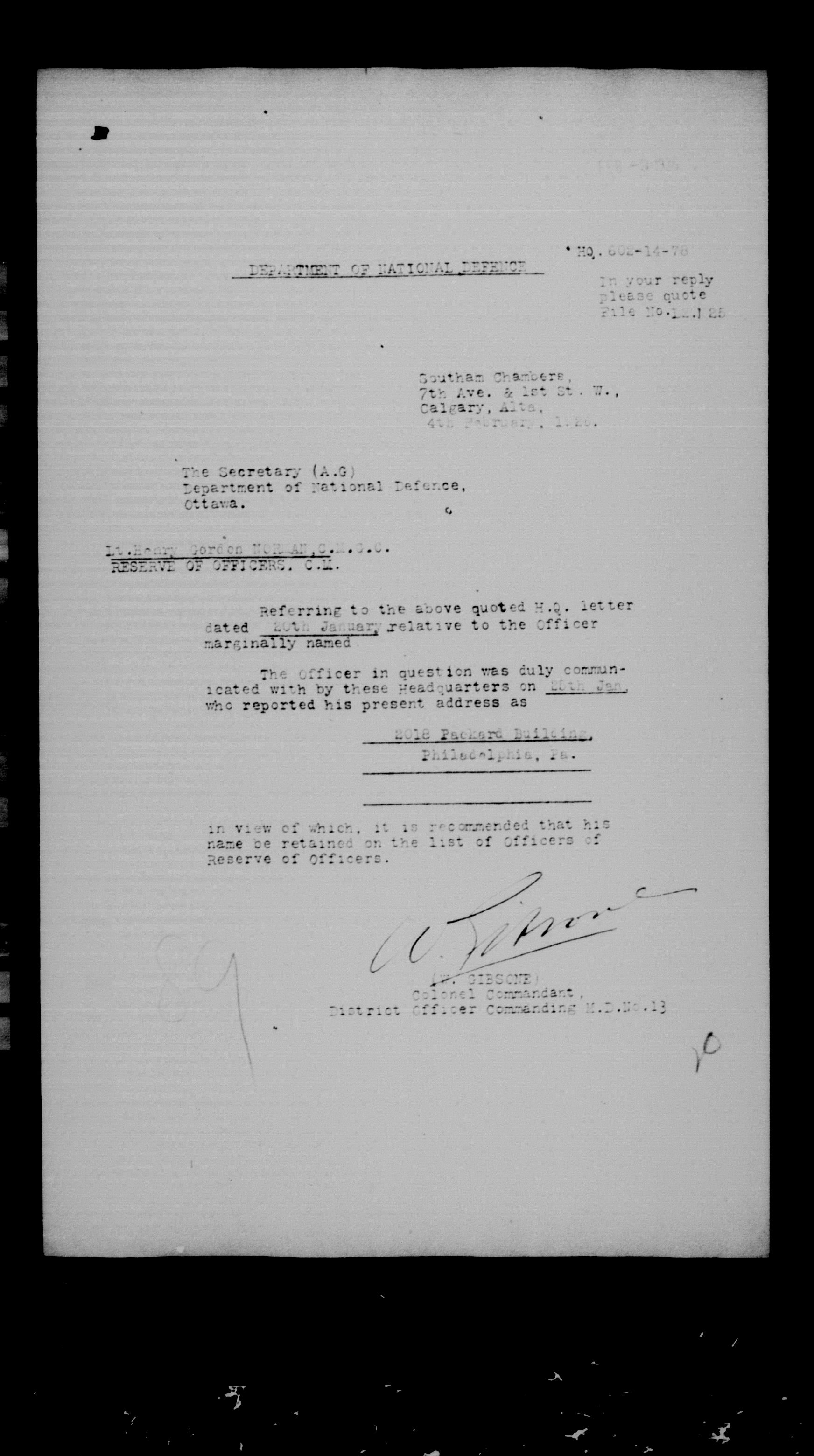 Militia and Defence personnel files [1870-1938] - 17698