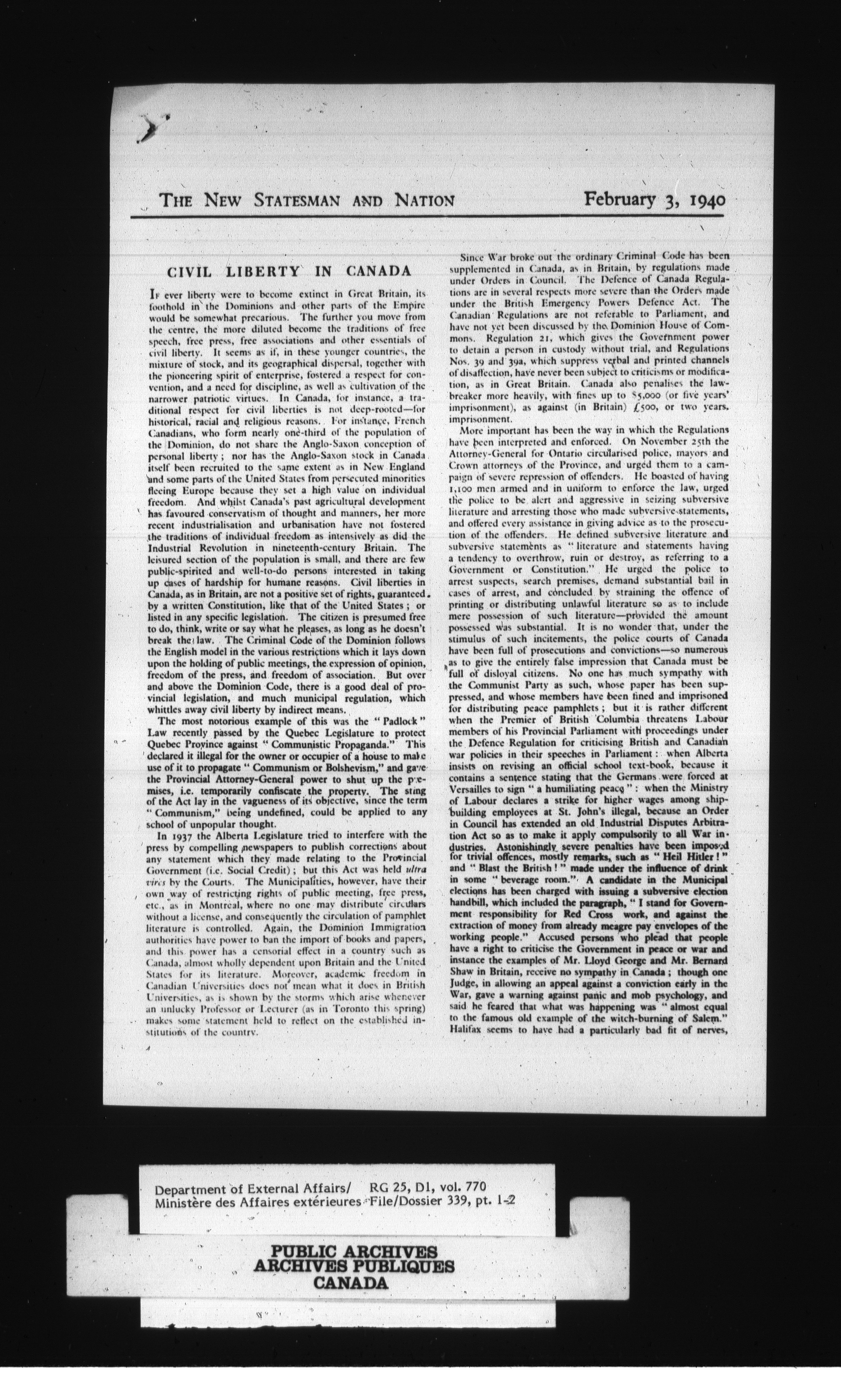 Department of External Affairs : Office of the Under-Secretary of State for External Affairs - 1770