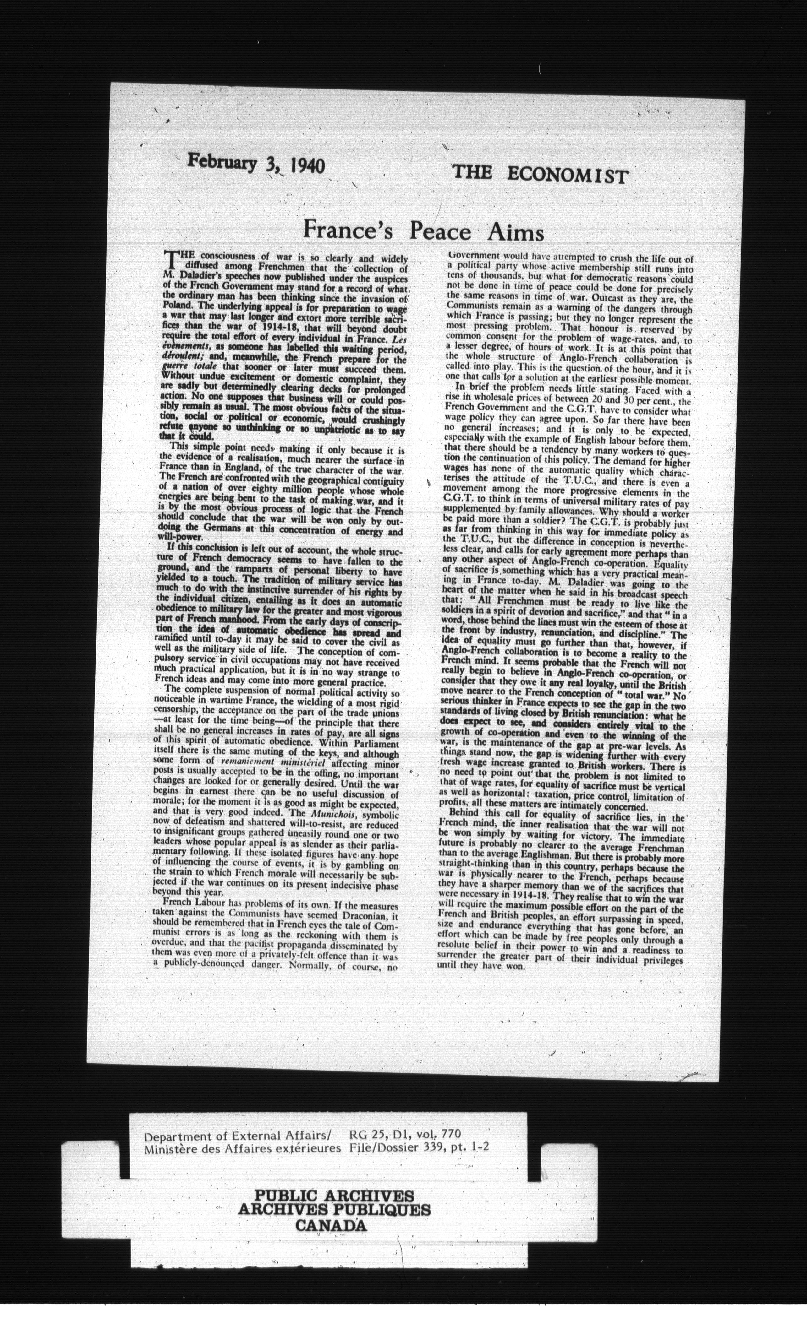 Department of External Affairs : Office of the Under-Secretary of State for External Affairs - 1770