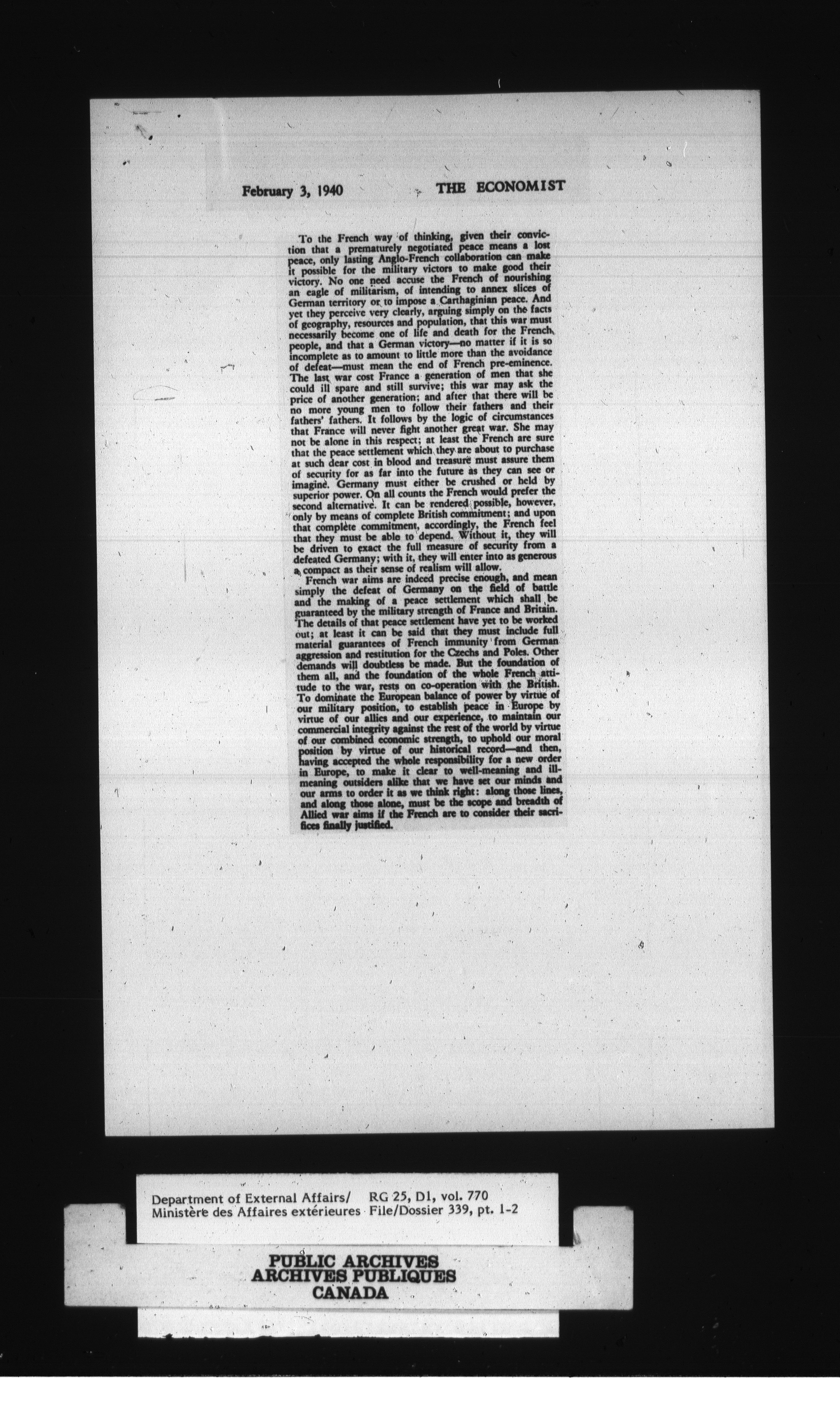 Department of External Affairs : Office of the Under-Secretary of State for External Affairs - 1770