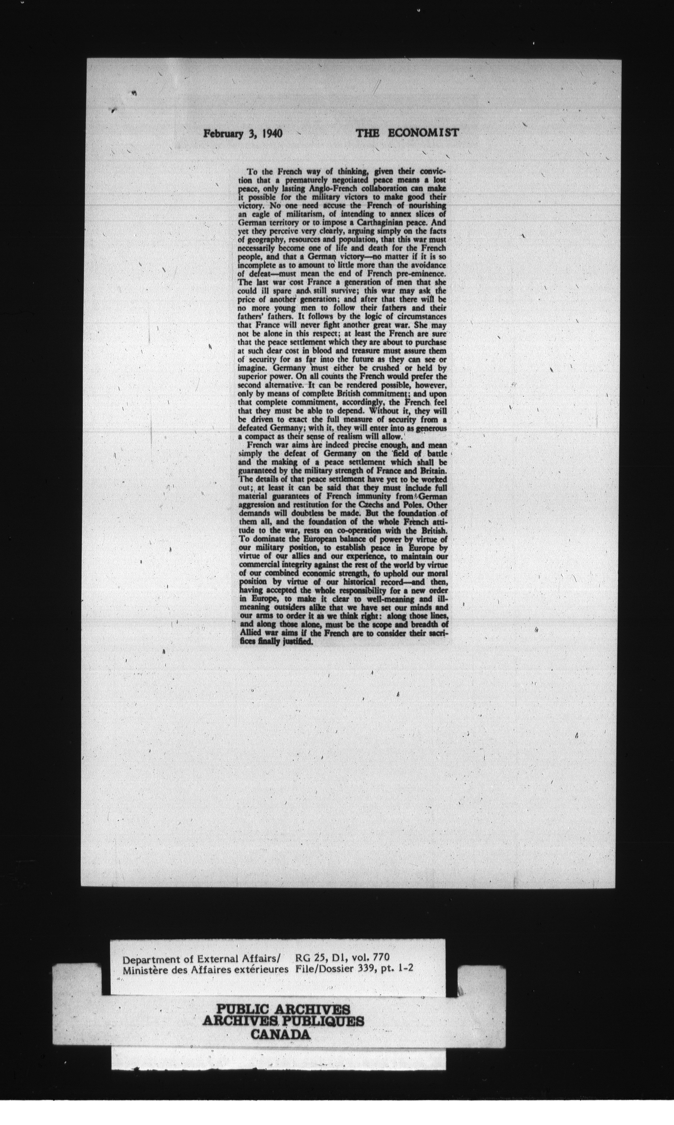 Department of External Affairs : Office of the Under-Secretary of State for External Affairs - 1770