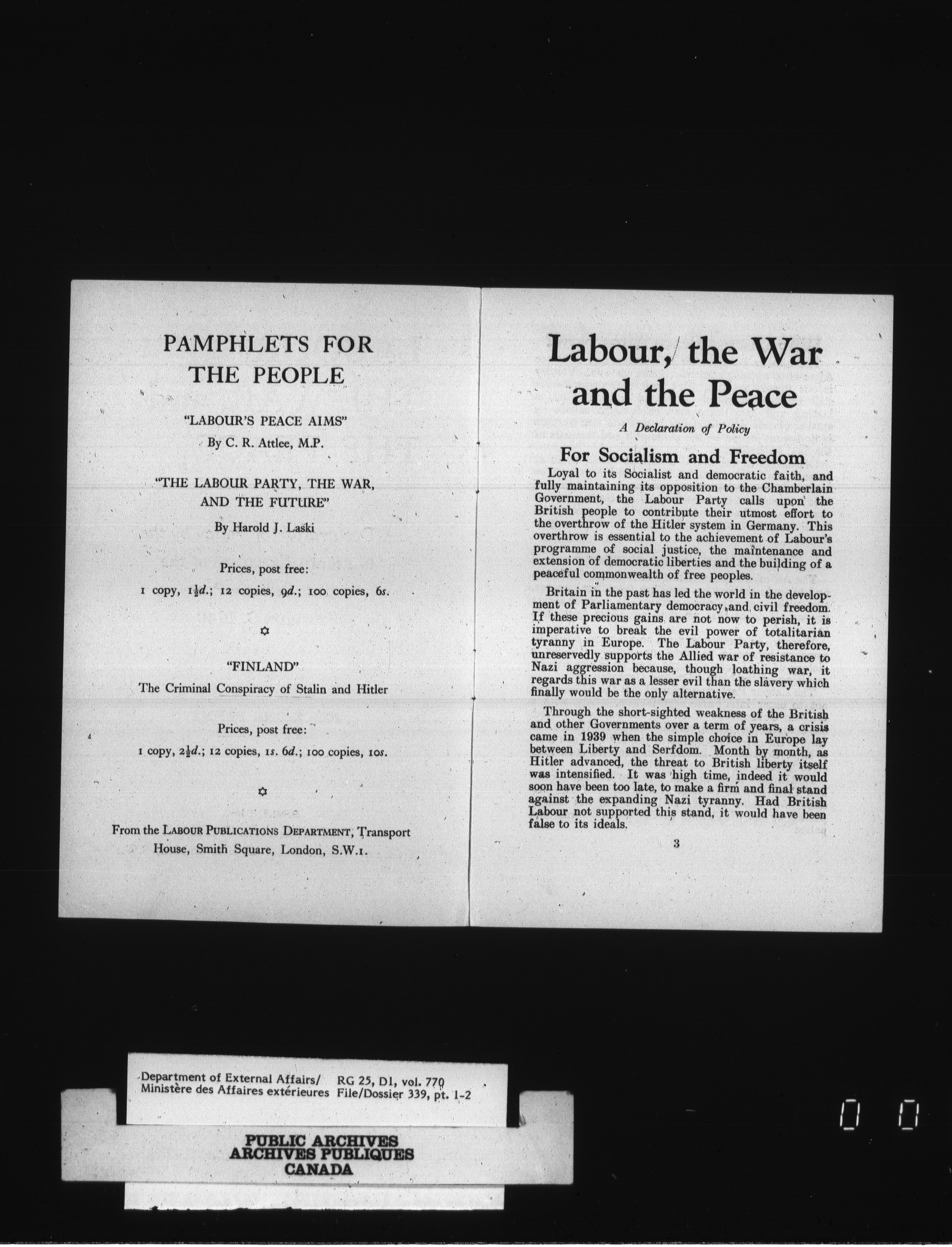 Department of External Affairs : Office of the Under-Secretary of State for External Affairs - 1770