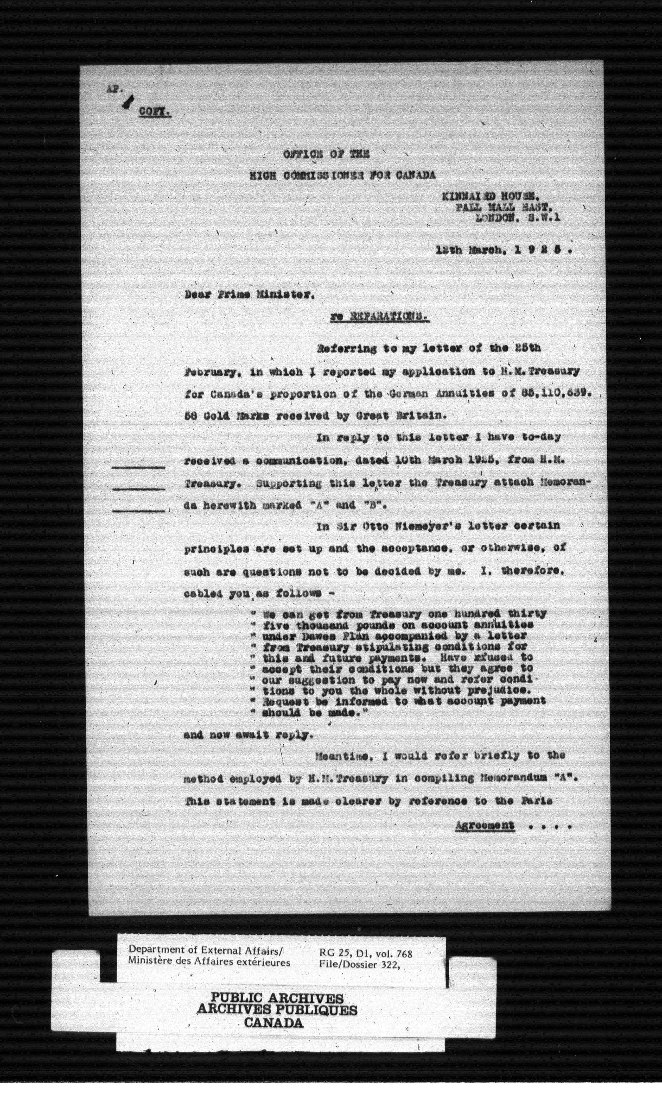Department of External Affairs : Office of the Under-Secretary of State for External Affairs : T-1770