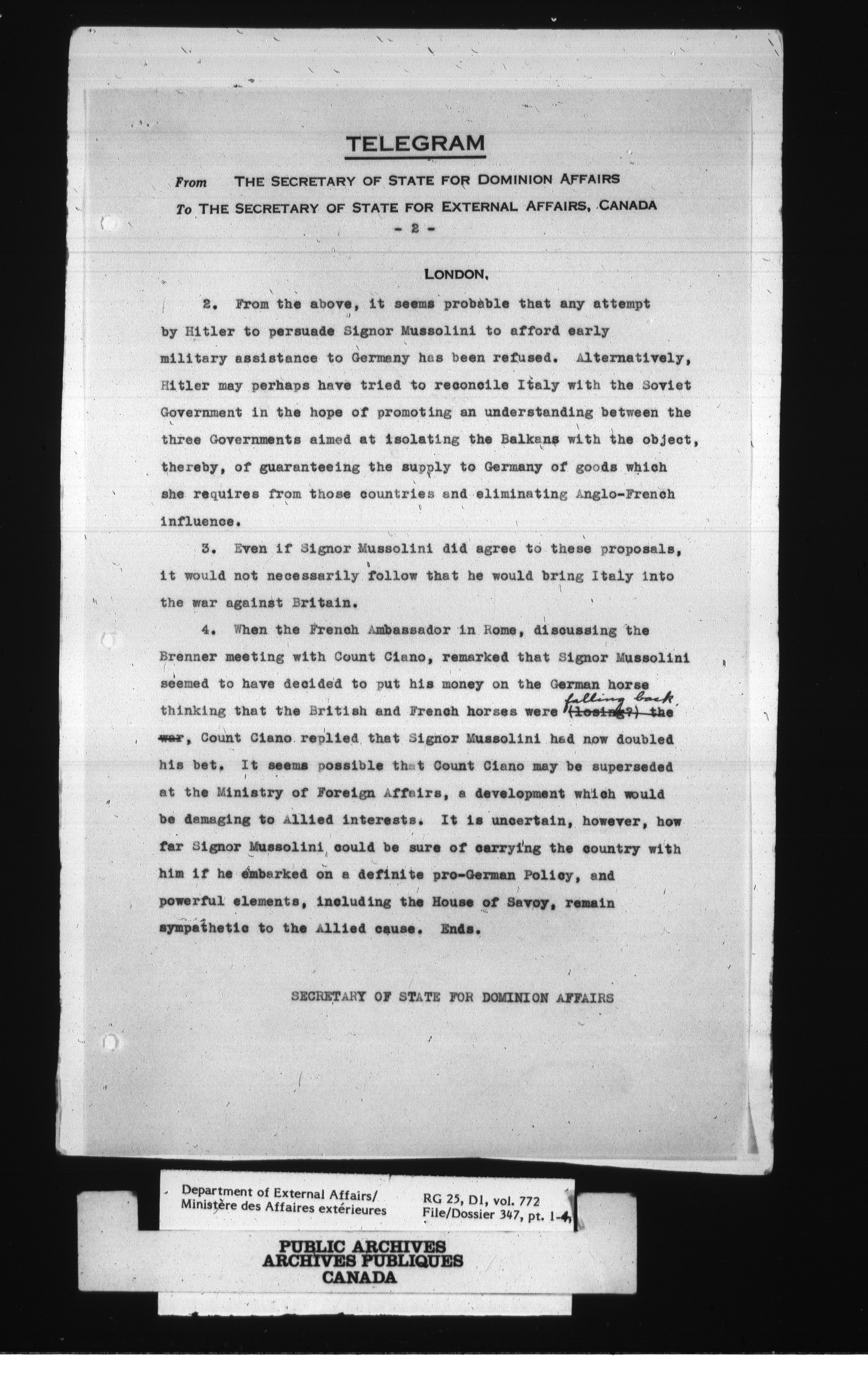 Department of External Affairs : Office of the Under-Secretary of State for External Affairs - 1771