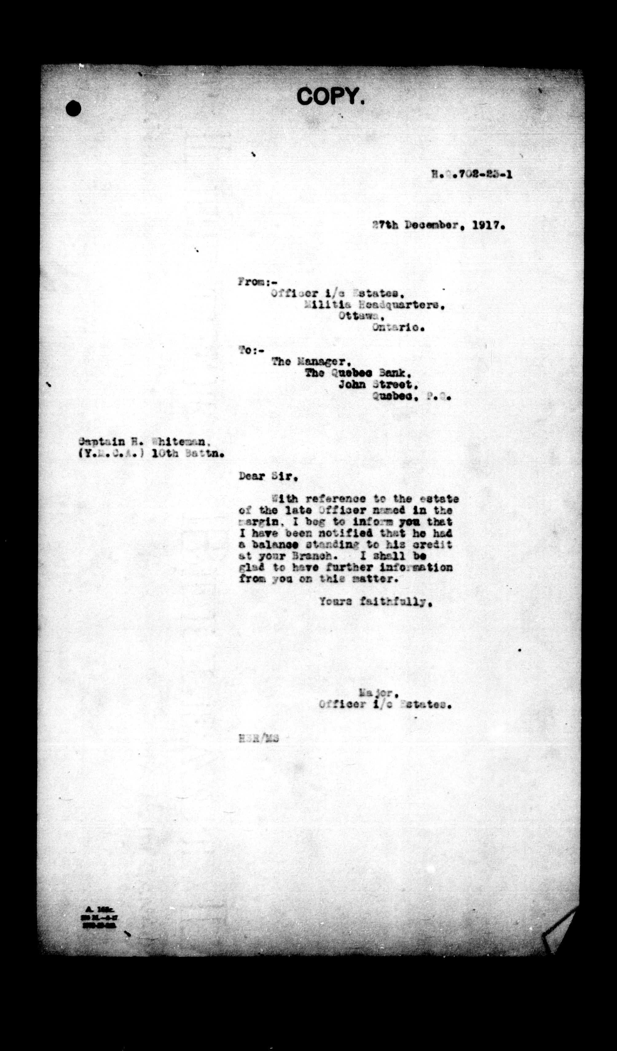 Militia and Defence personnel files [1870-1938] - 17716
