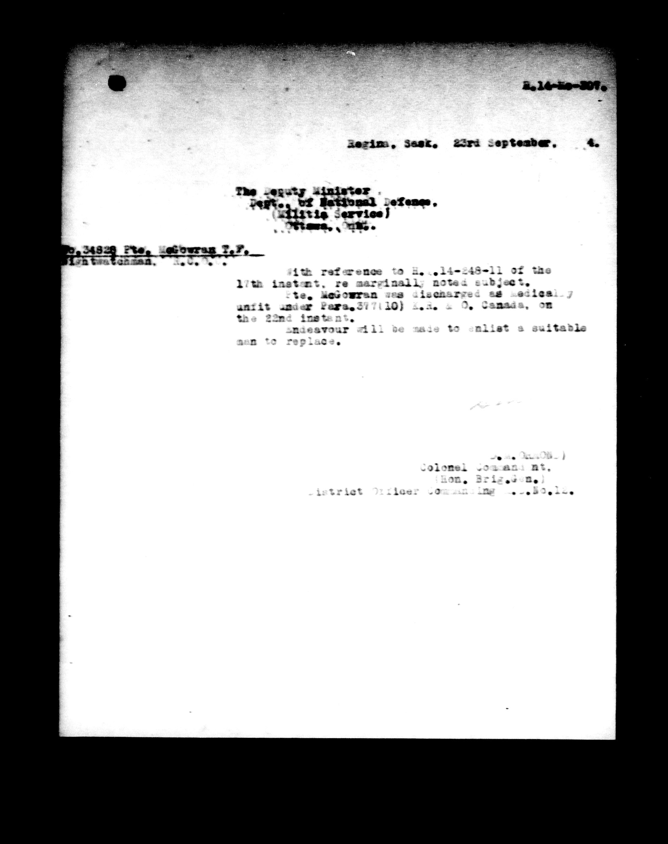 Militia and Defence personnel files, (1870-1948) - 17725