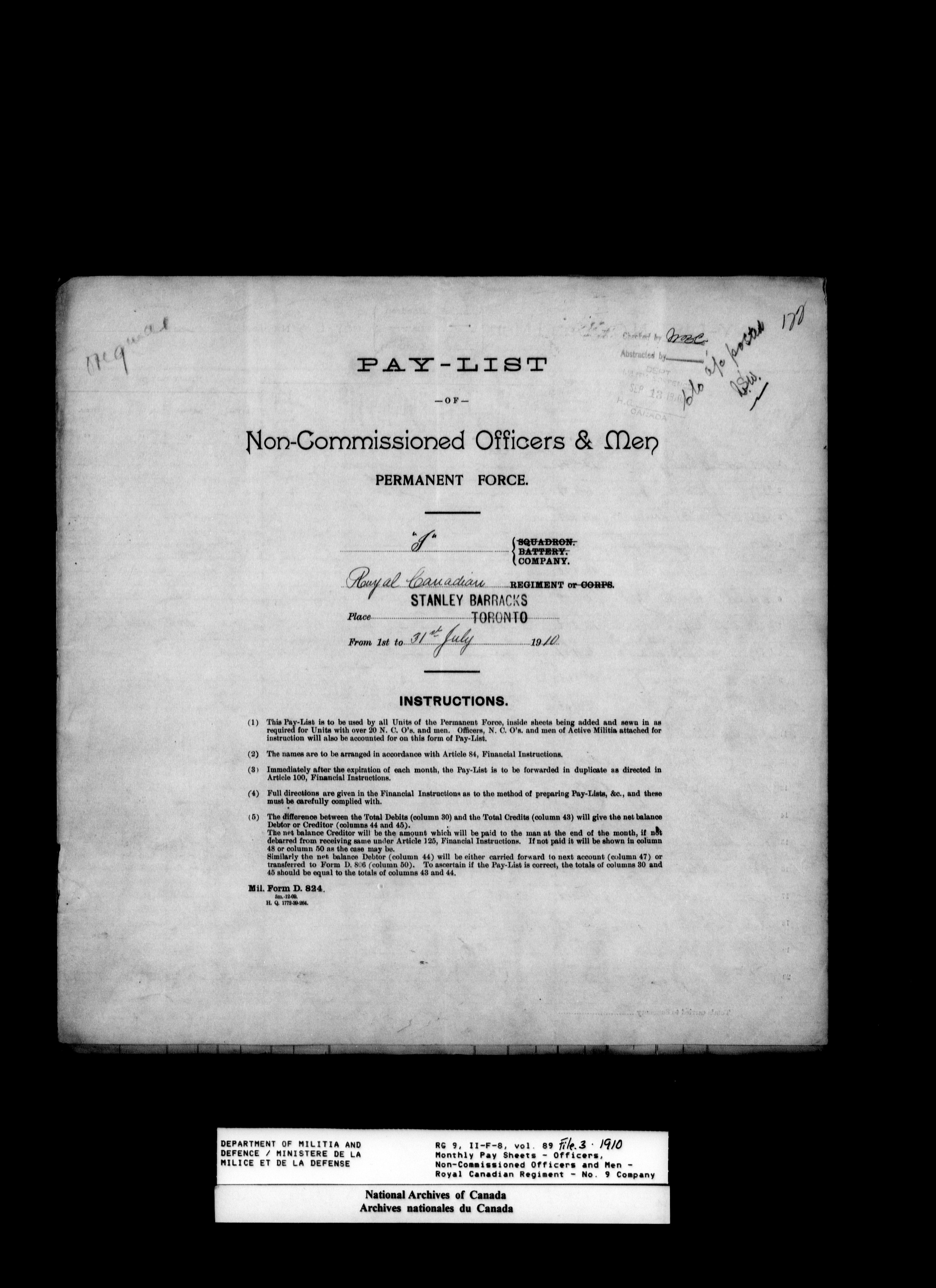 Nominal rolls and paylists for the Permanent Force - 17754