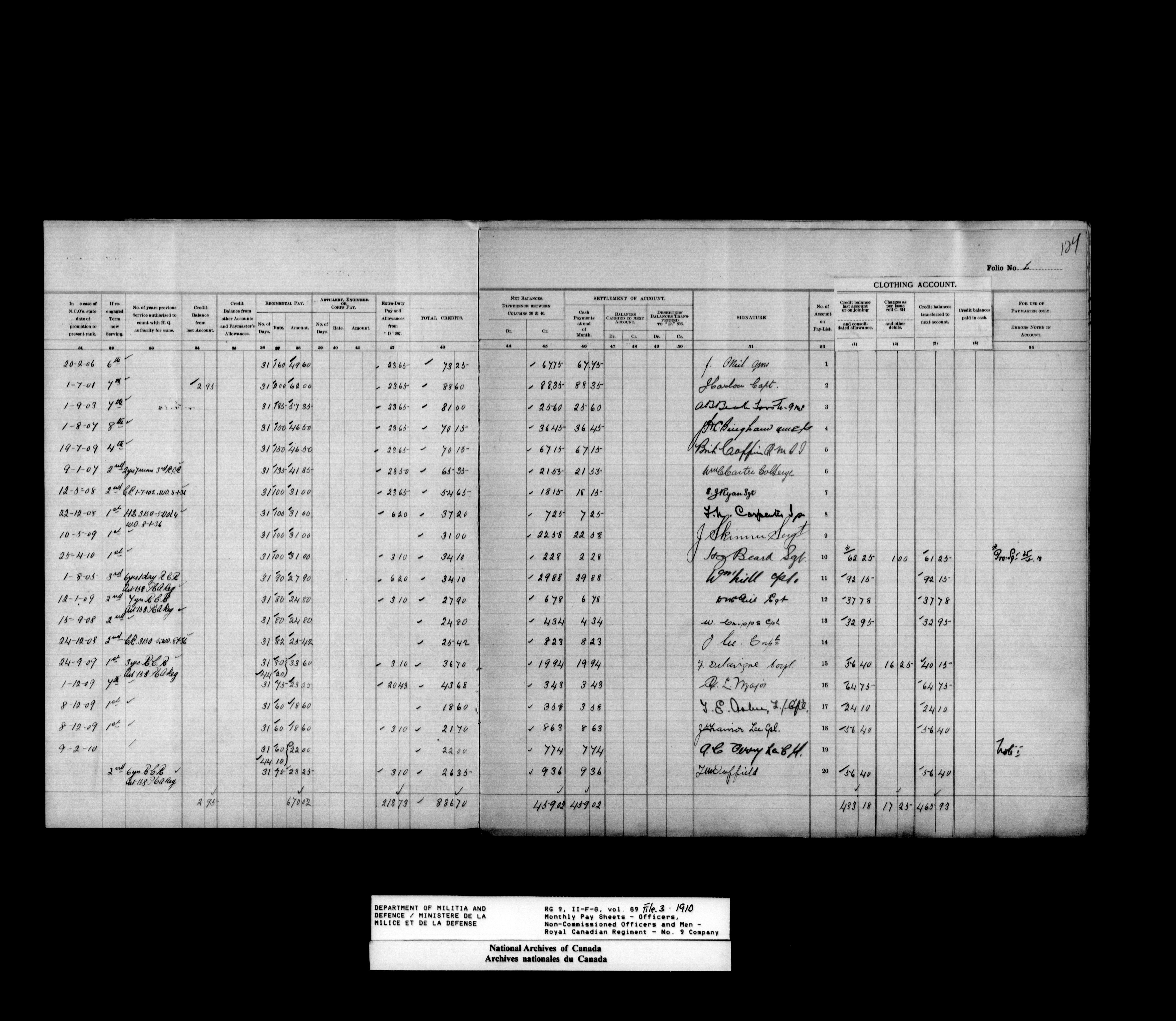 Nominal rolls and paylists for the Permanent Force - 17754
