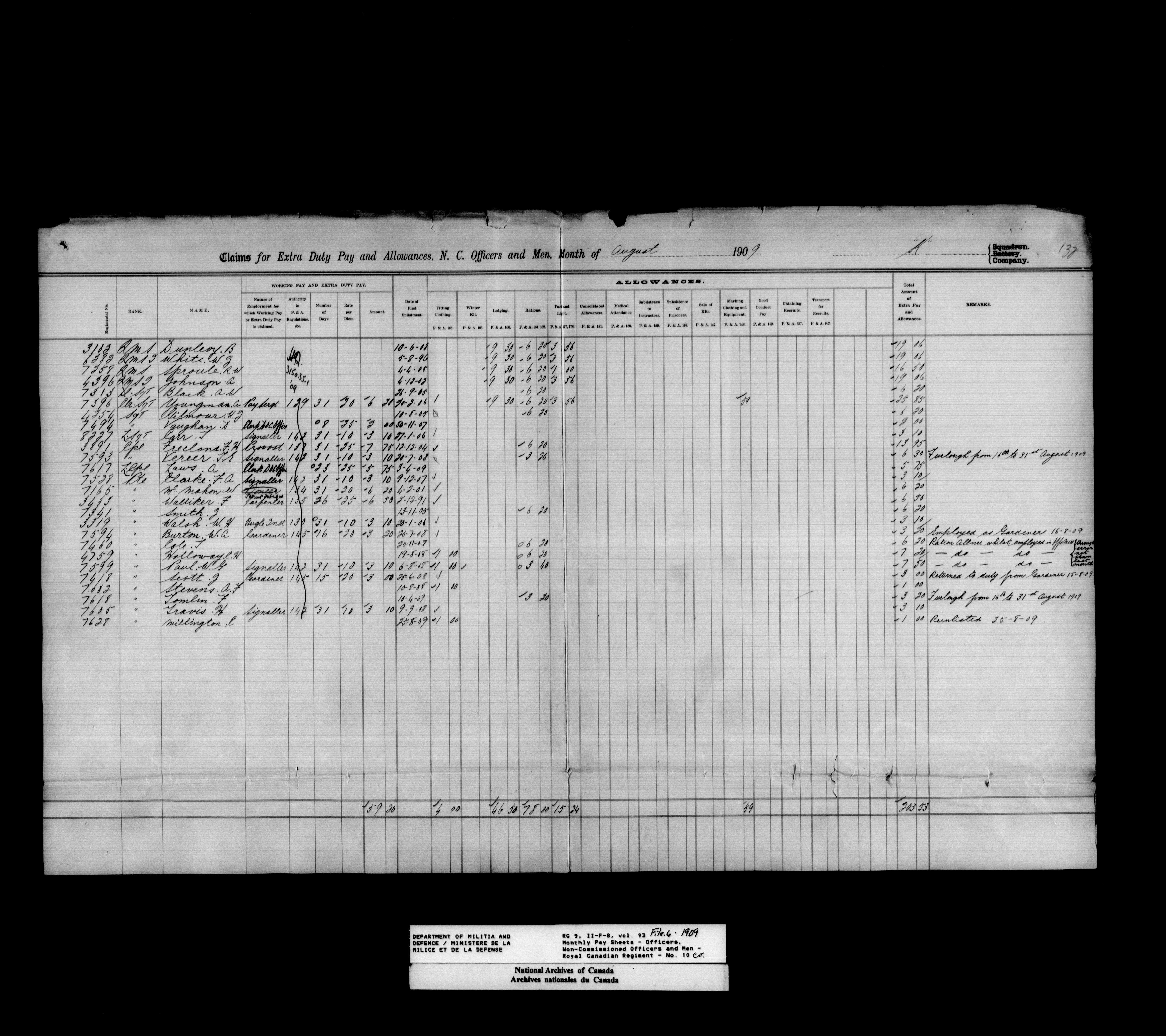 Department of Militia and Defence; nominal rolls and paylists for the Permanent Force : T-17755