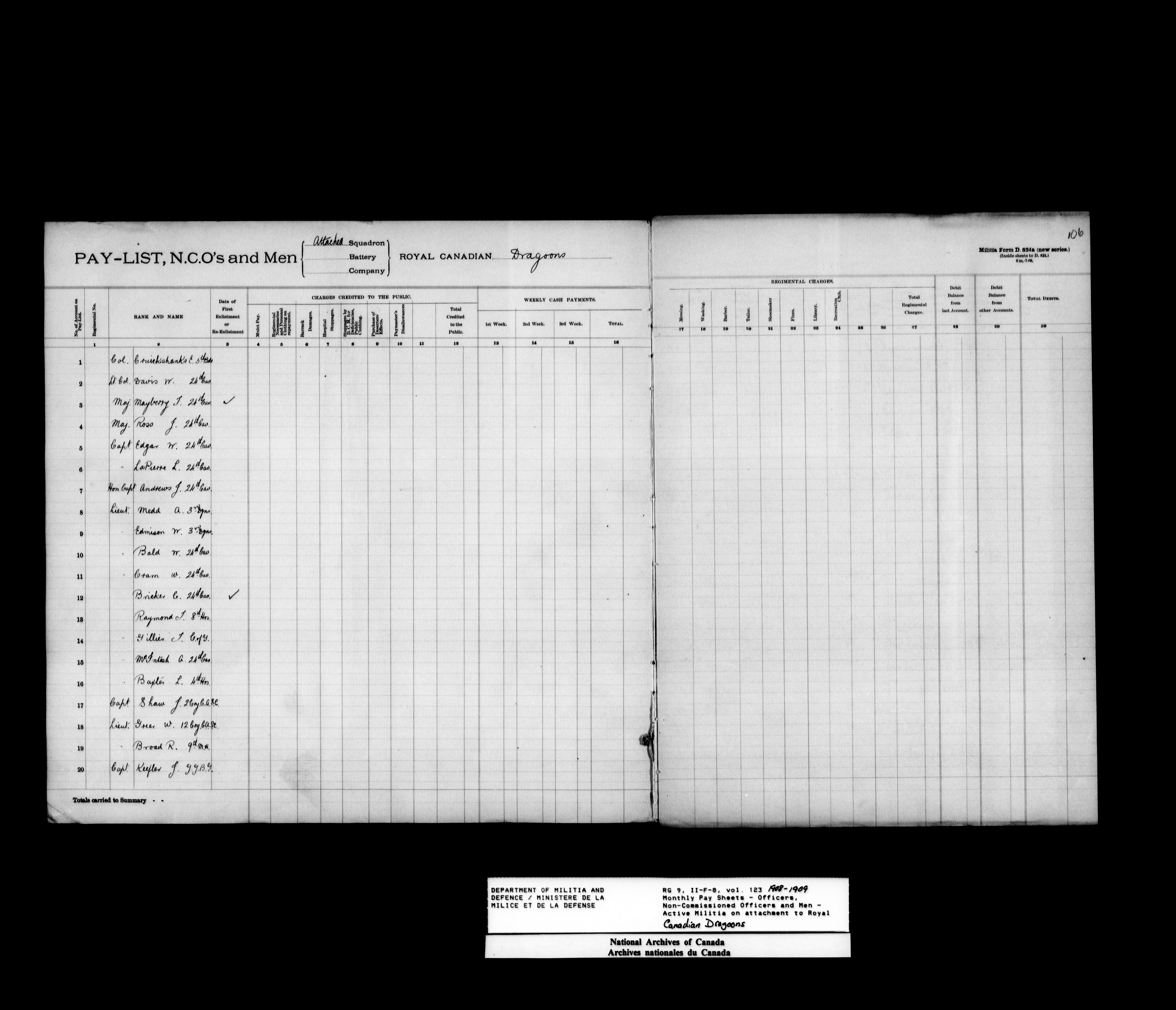 Department of Militia and Defence; nominal rolls and paylists for the Permanent Force : T-17767