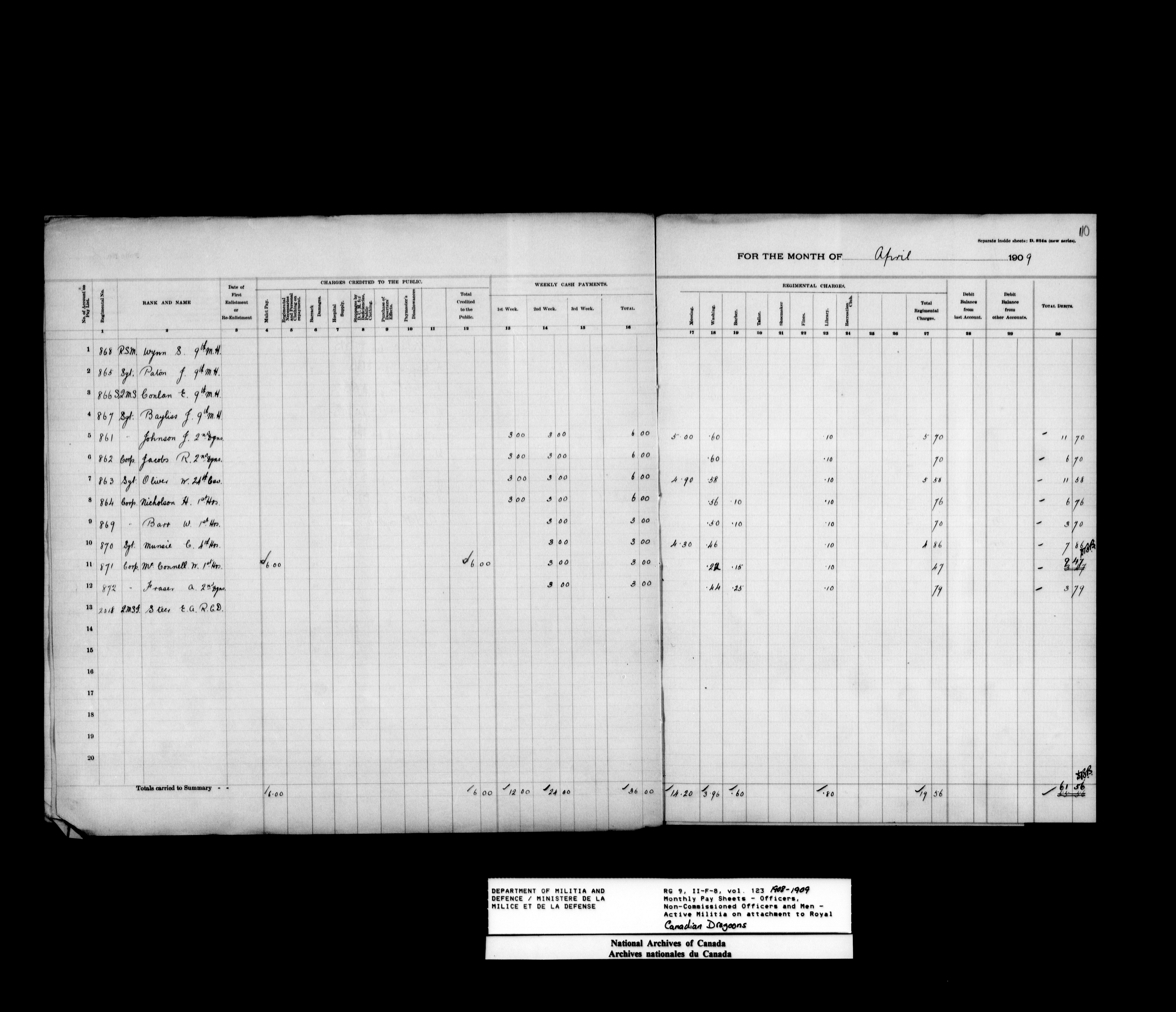 Department of Militia and Defence; nominal rolls and paylists for the Permanent Force : T-17767