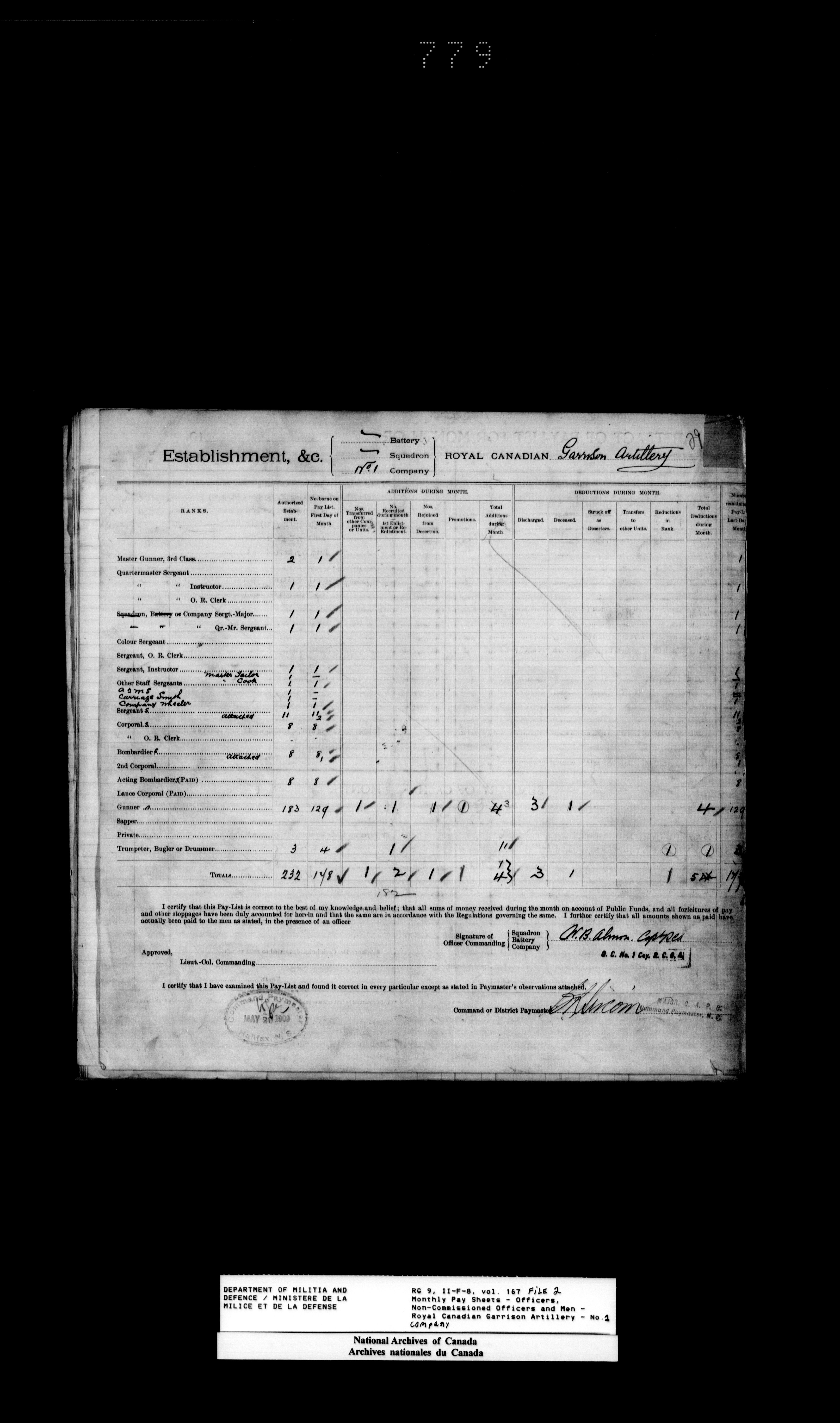 Department of Militia and Defence; nominal rolls and paylists for the Permanent Force : T-17785