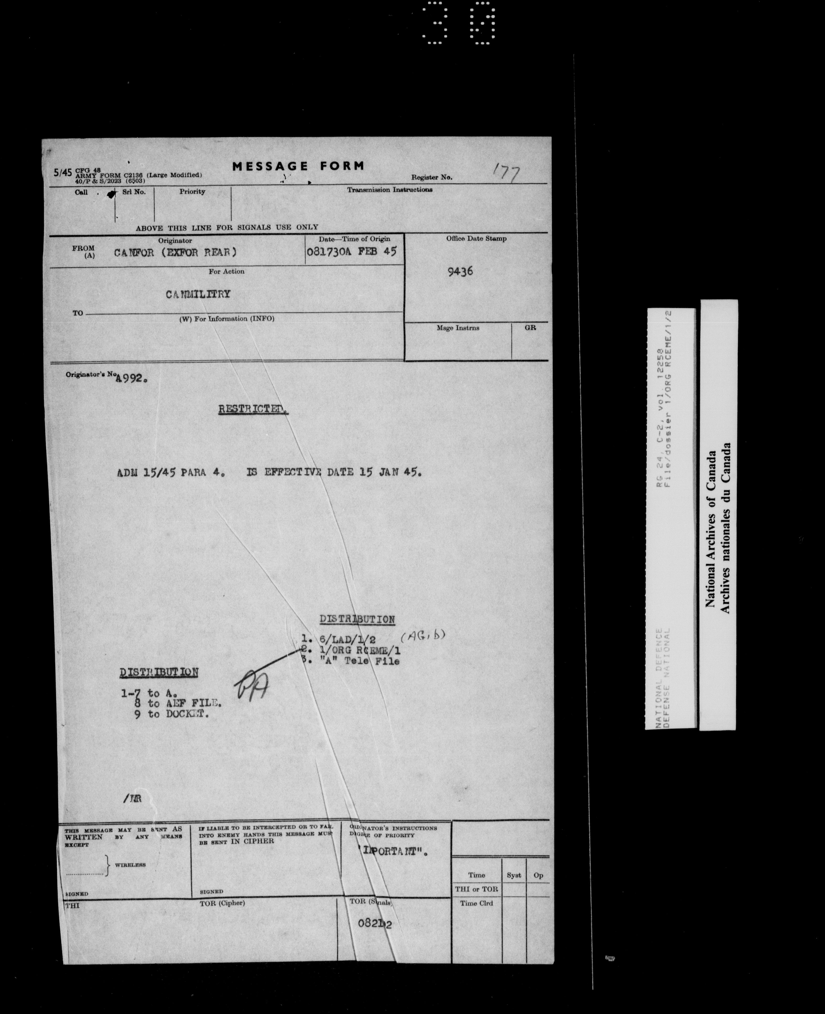 Canadian Military Headquarters, London (1939-1947) - 17861