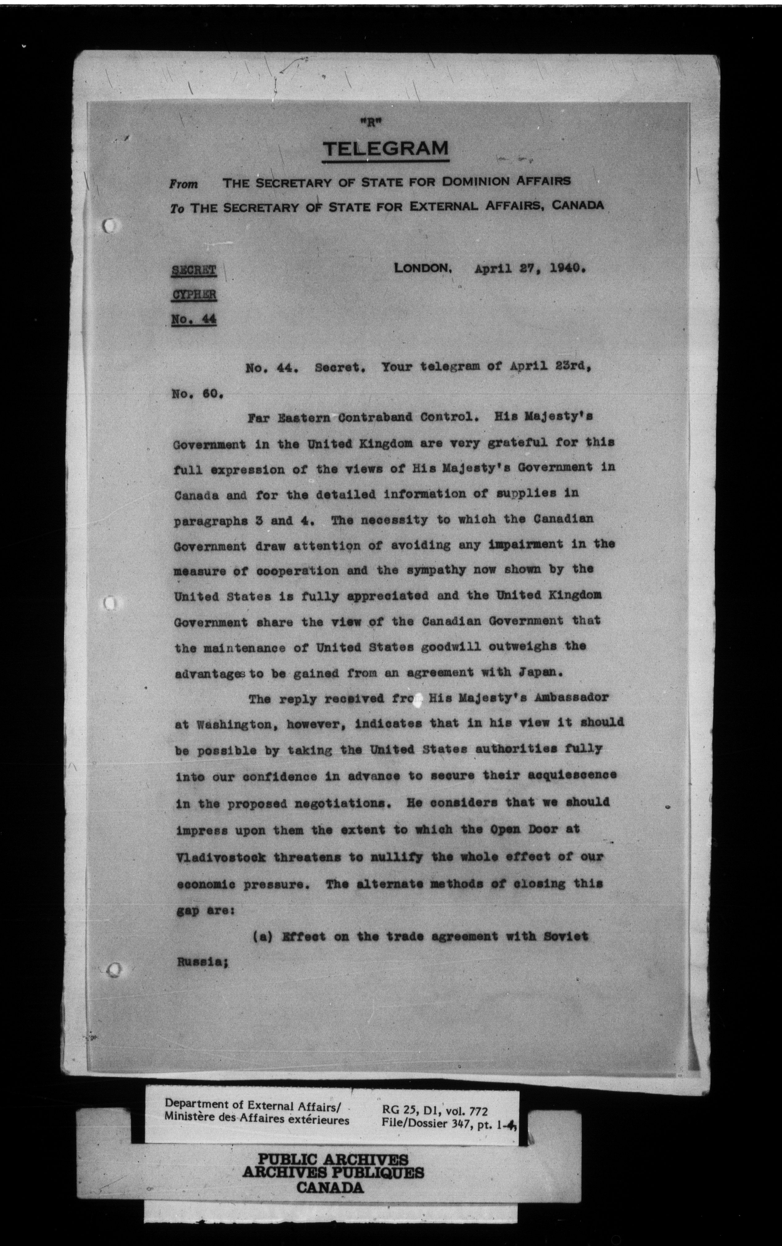 Department of External Affairs : Office of the Under-Secretary of State for External Affairs - 1790