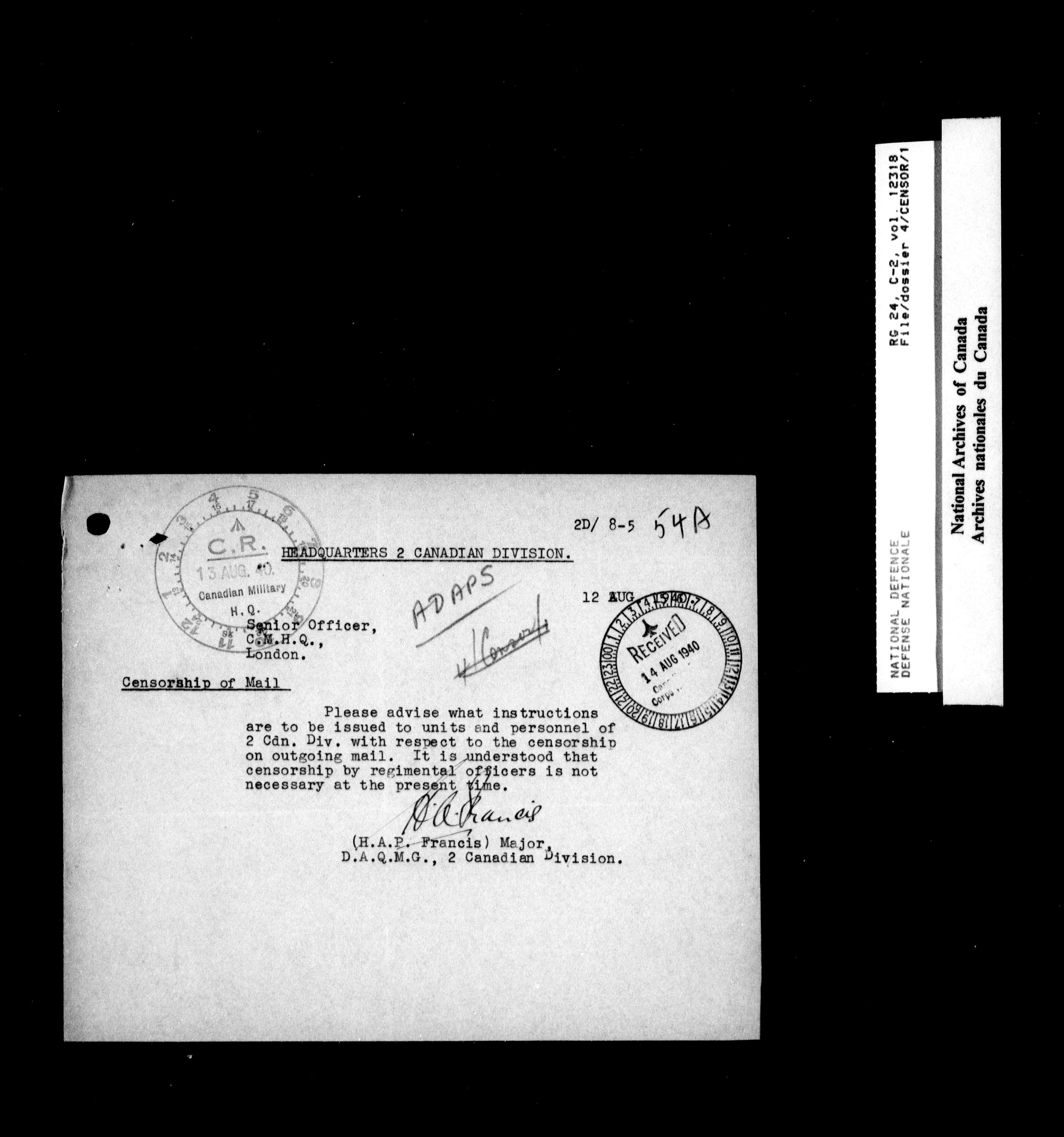 Canadian Military Headquarters, London (1939-1947) - 17919