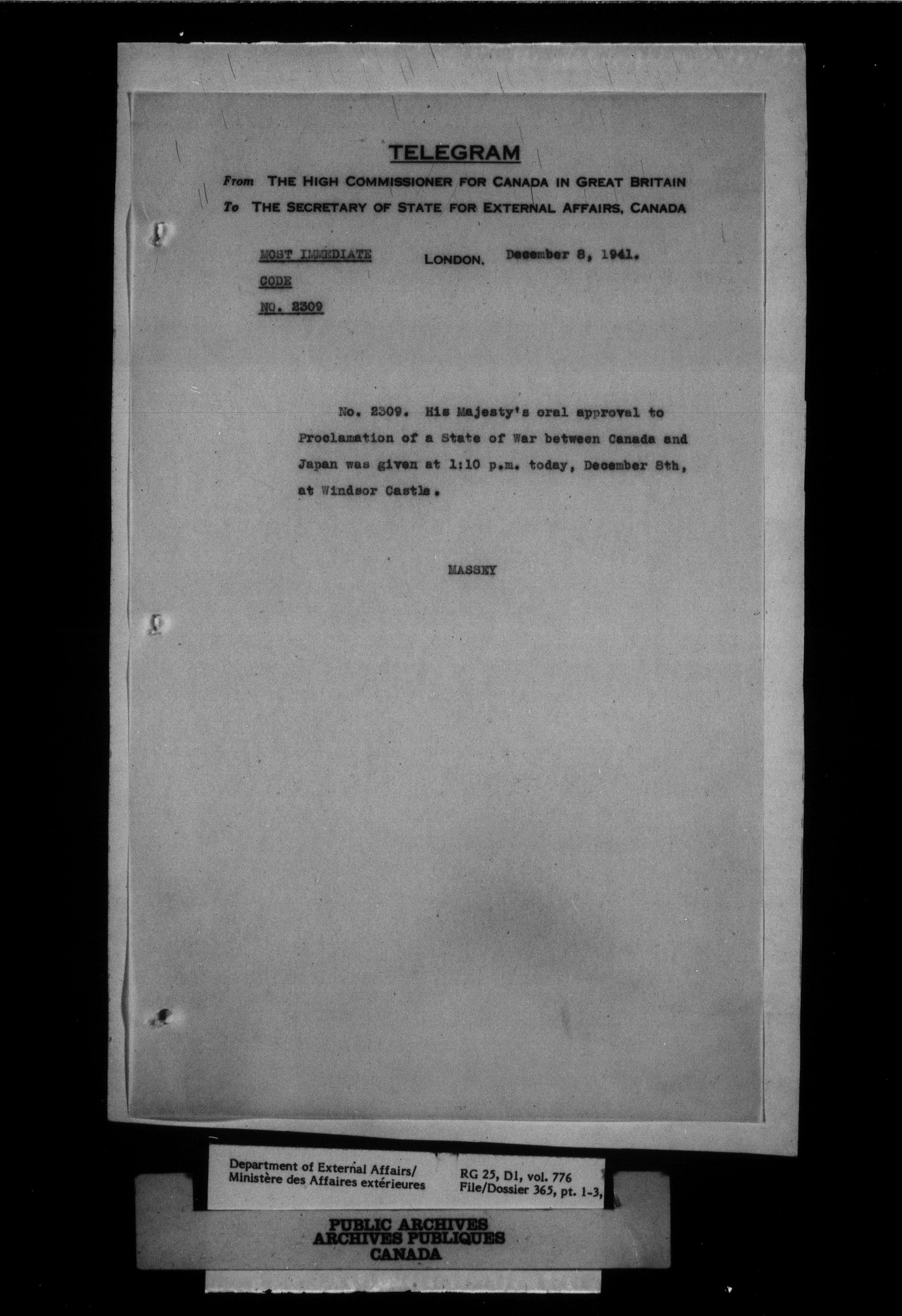 Department of External Affairs : Office of the Under-Secretary of State for External Affairs - 1792