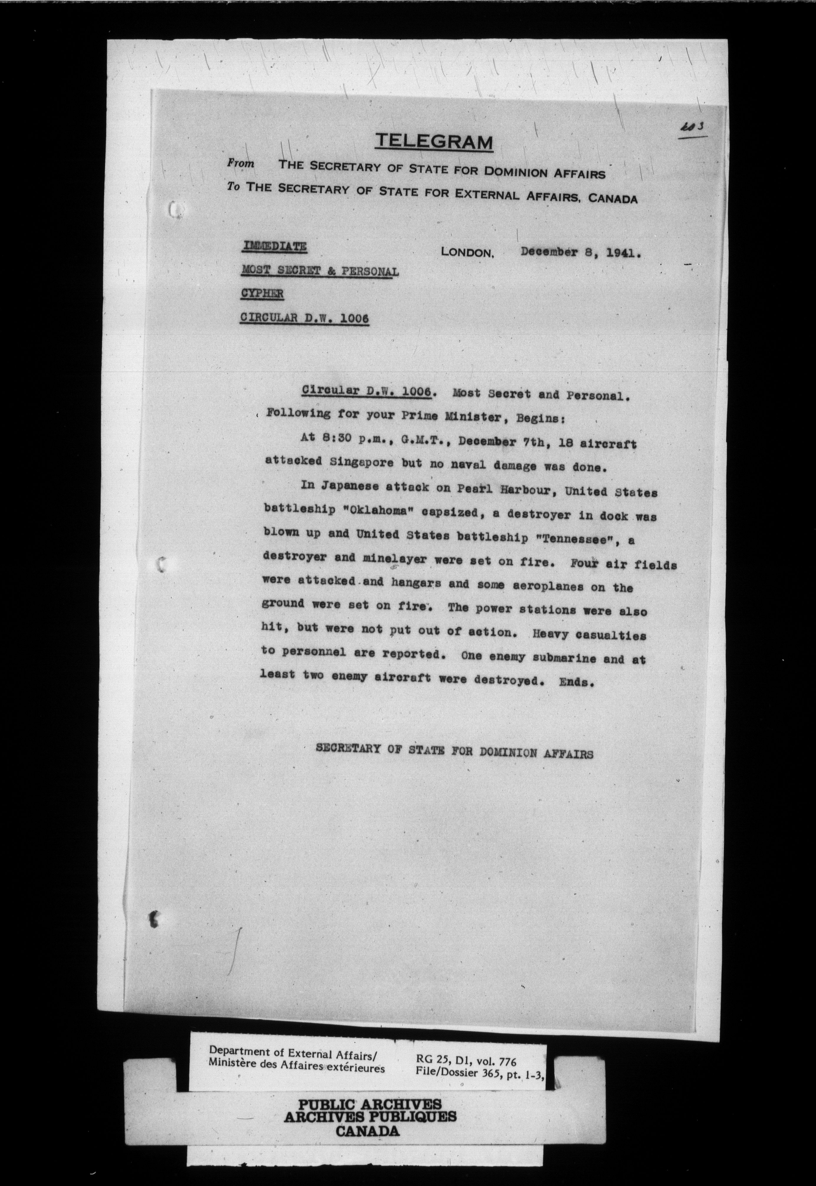 Department of External Affairs : Office of the Under-Secretary of State for External Affairs - 1792