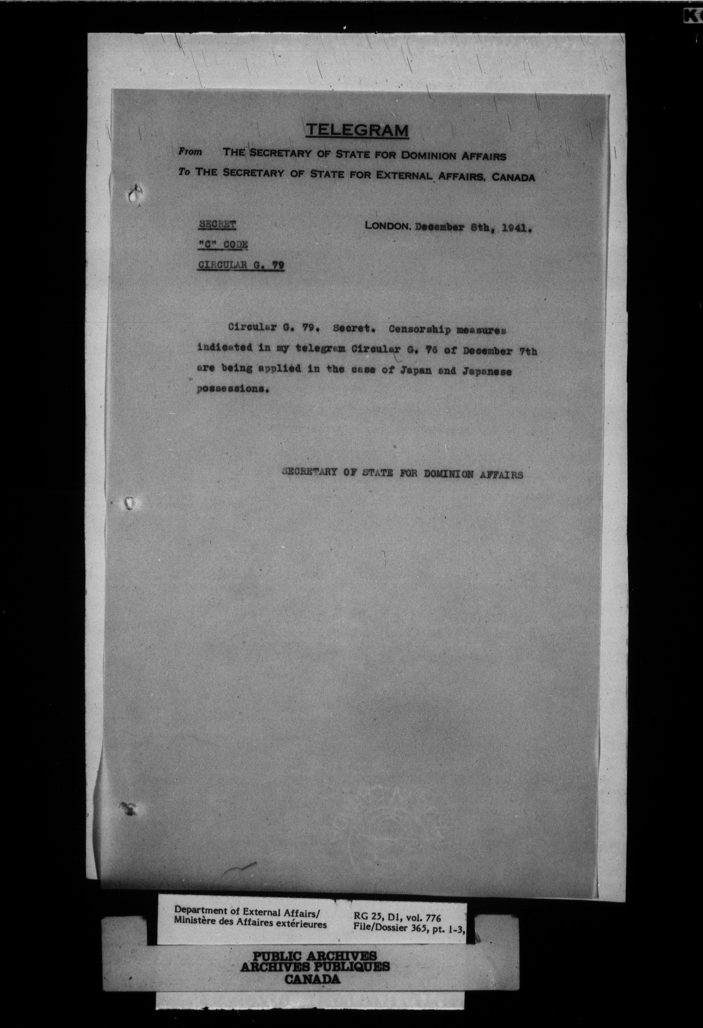 Department of External Affairs : Office of the Under-Secretary of State for External Affairs - 1792