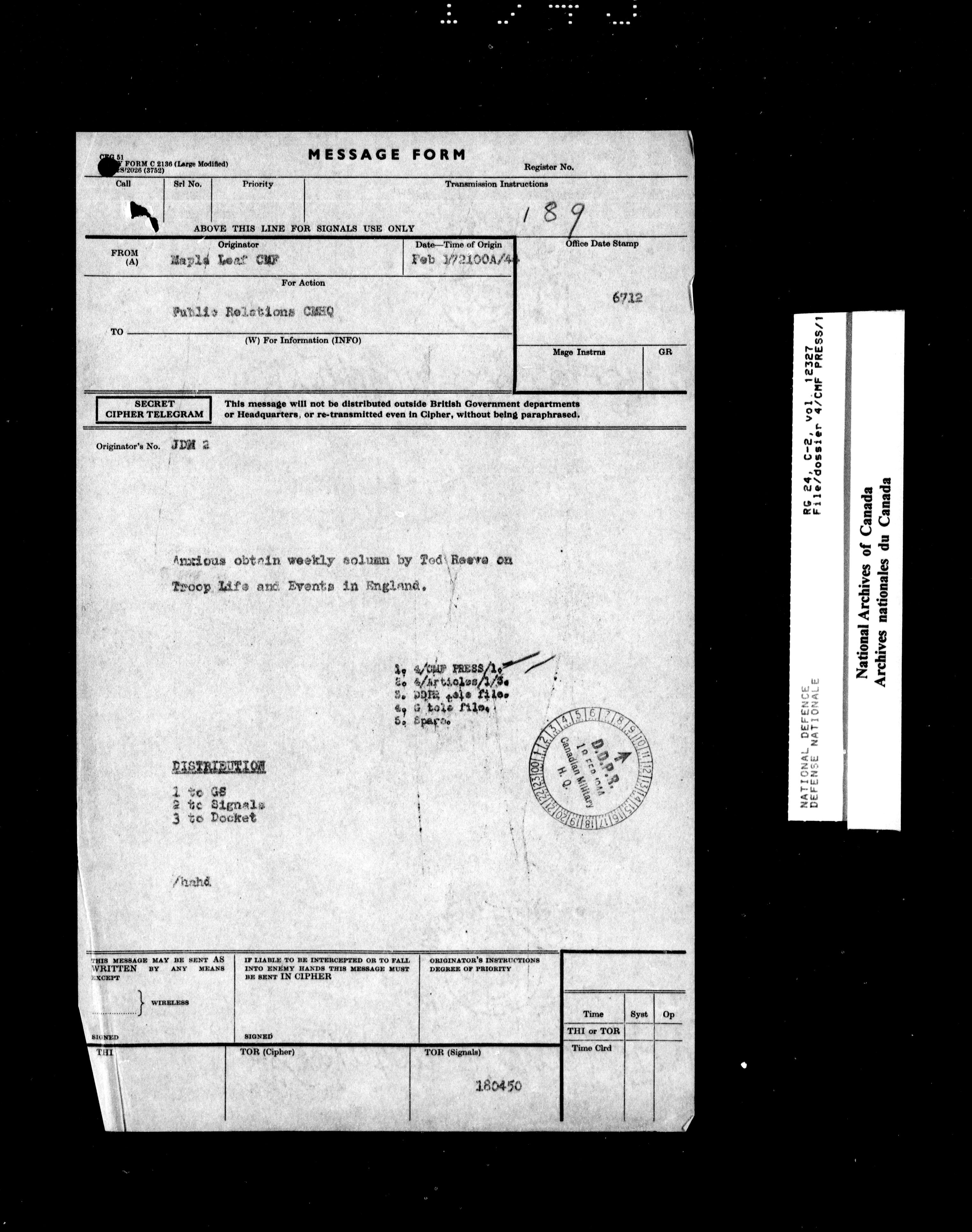 Canadian Military Headquarters, London (1939-1947) - 17929