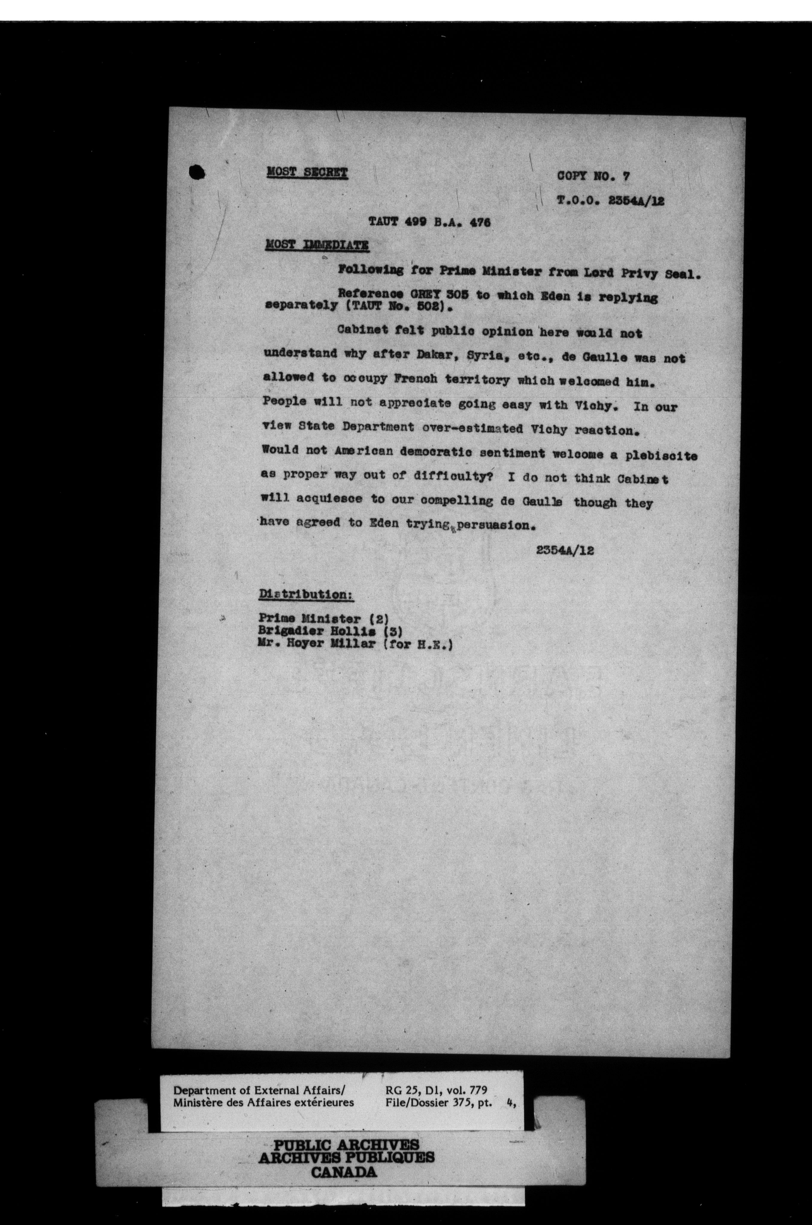 Department of External Affairs : Office of the Under-Secretary of State for External Affairs - 1793