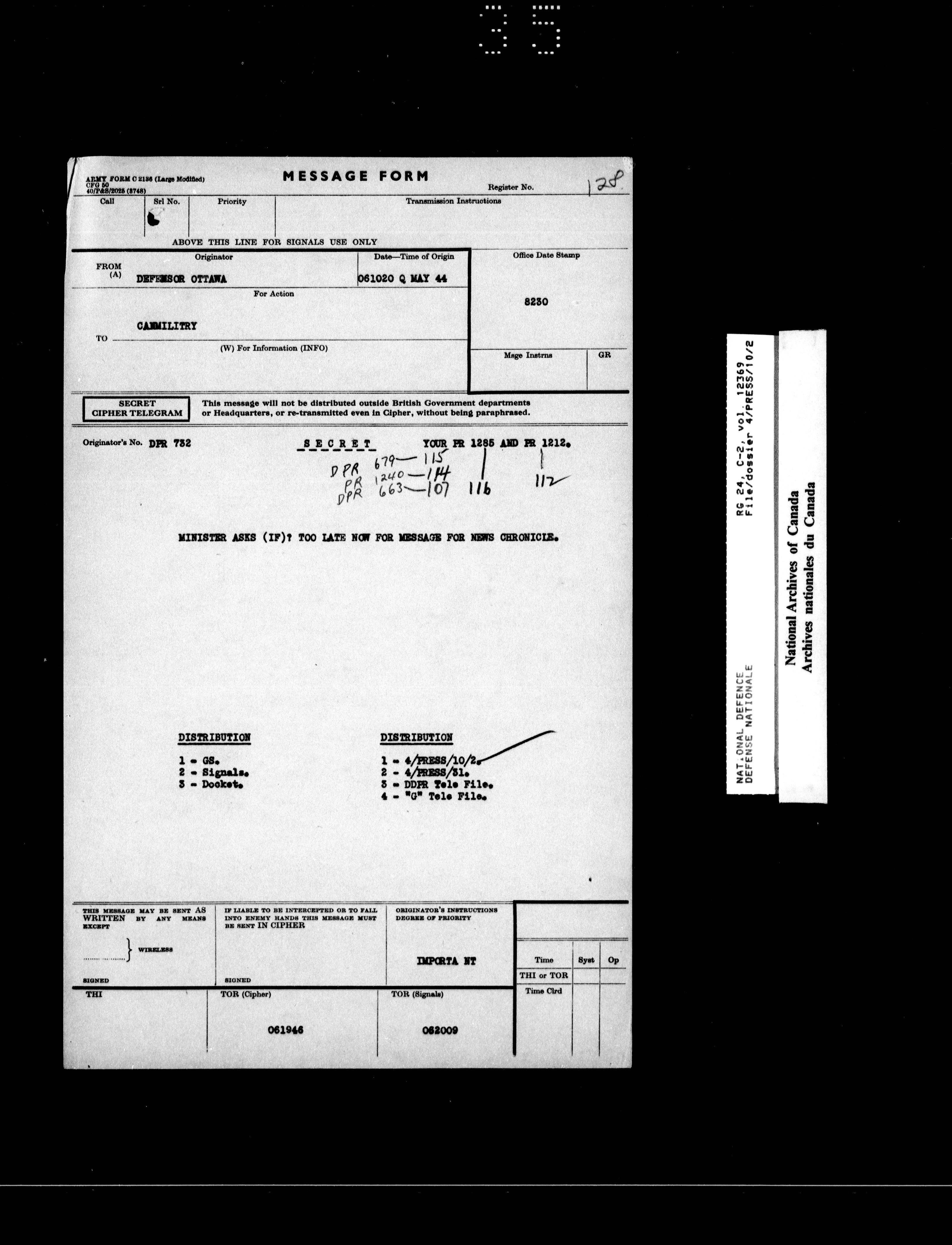 Canadian Military Headquarters, London (1939-1947) - 17972