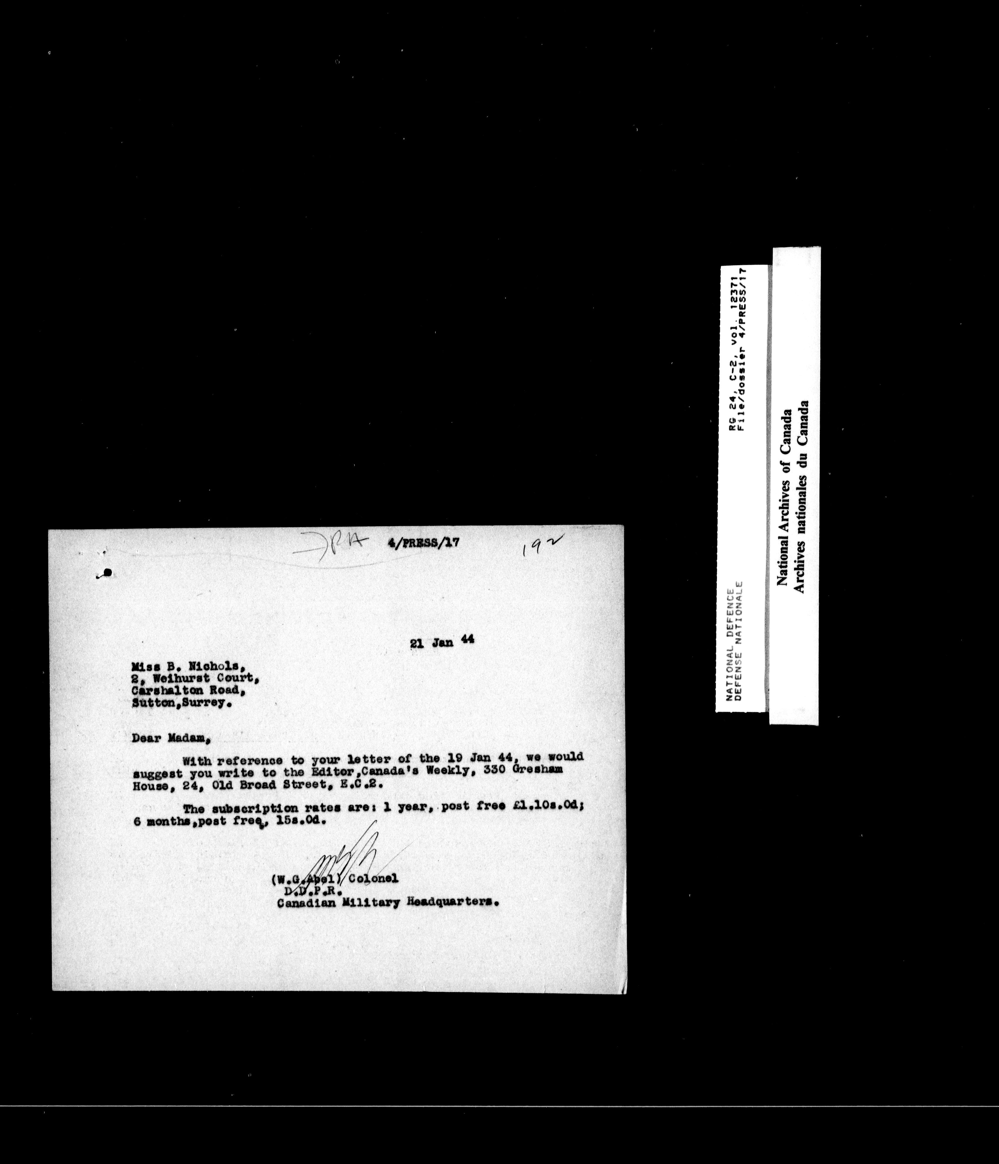Canadian Military Headquarters, London (1939-1947) - 17973