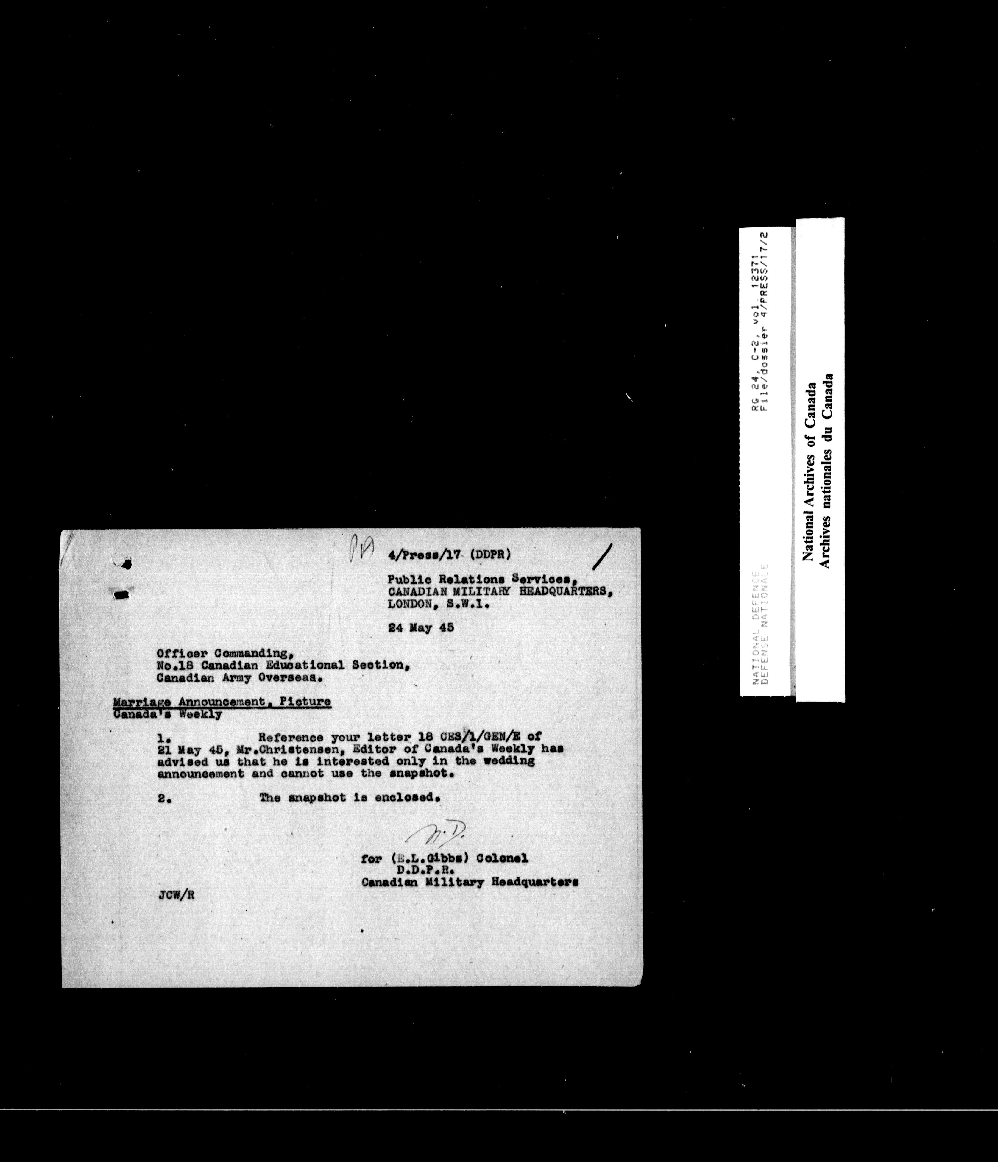 Canadian Military Headquarters, London (1939-1947) - 17974