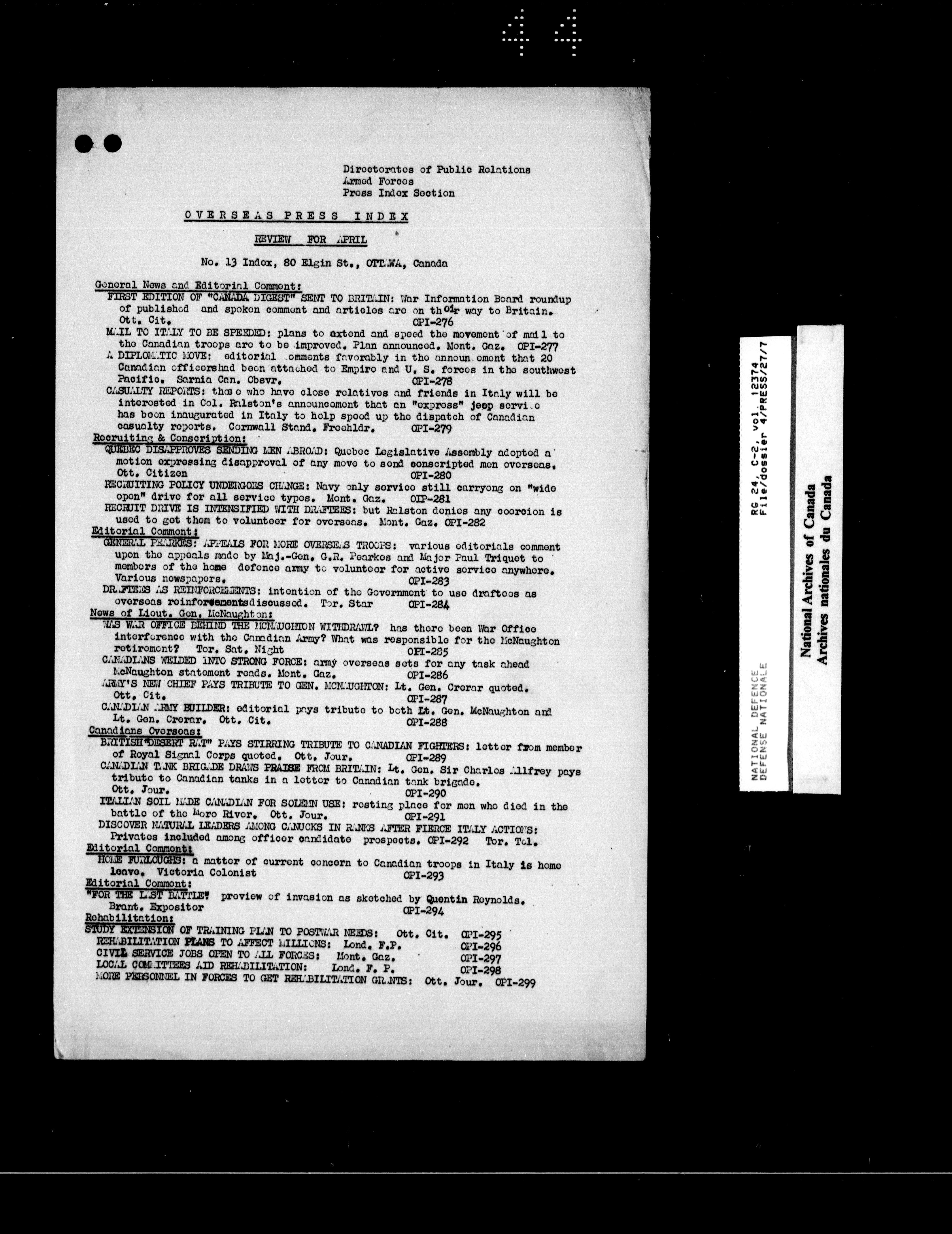 Canadian Military Headquarters, London (1939-1947) - 17978