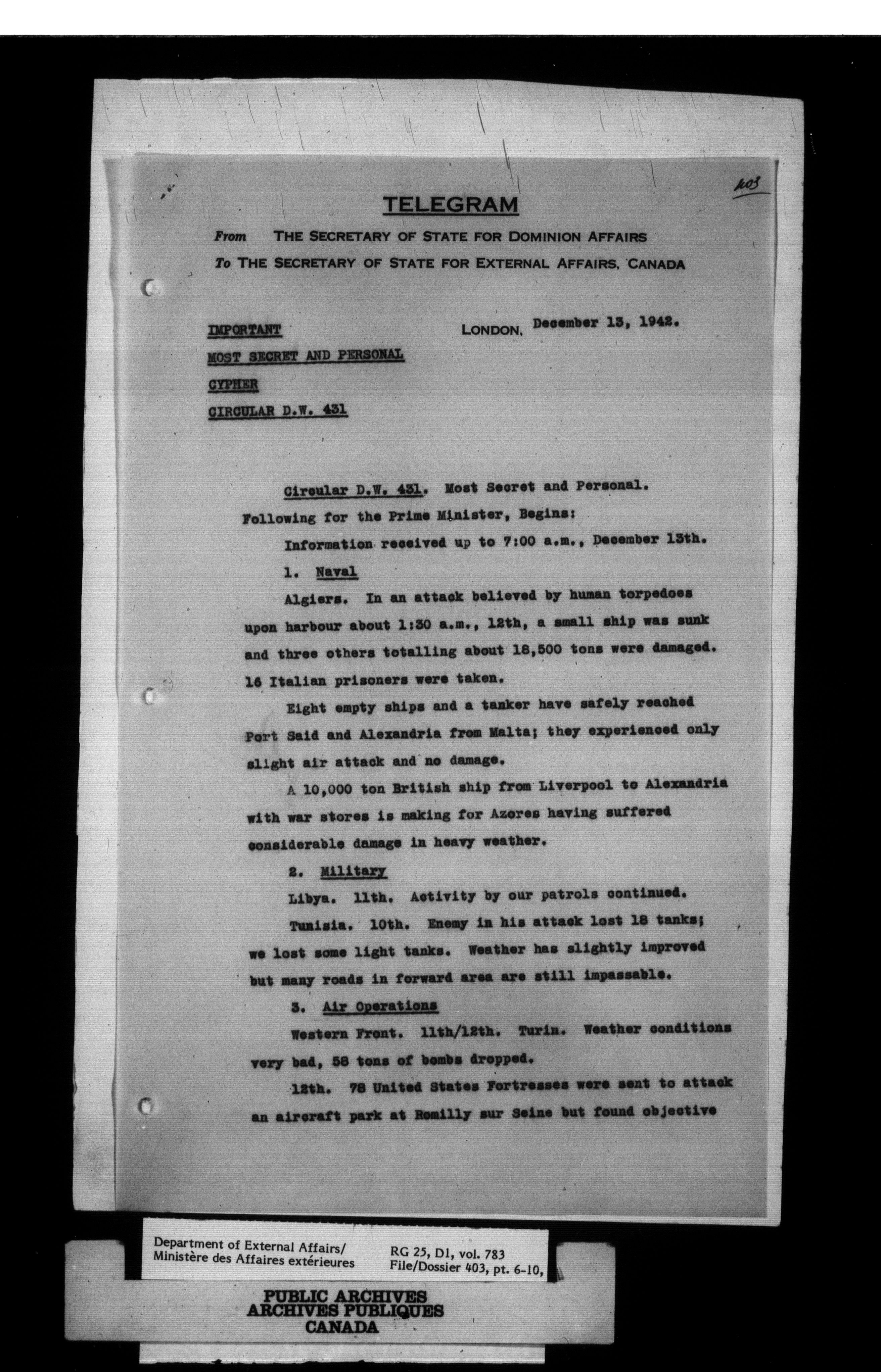 Department of External Affairs : Office of the Under-Secretary of State for External Affairs - 1798