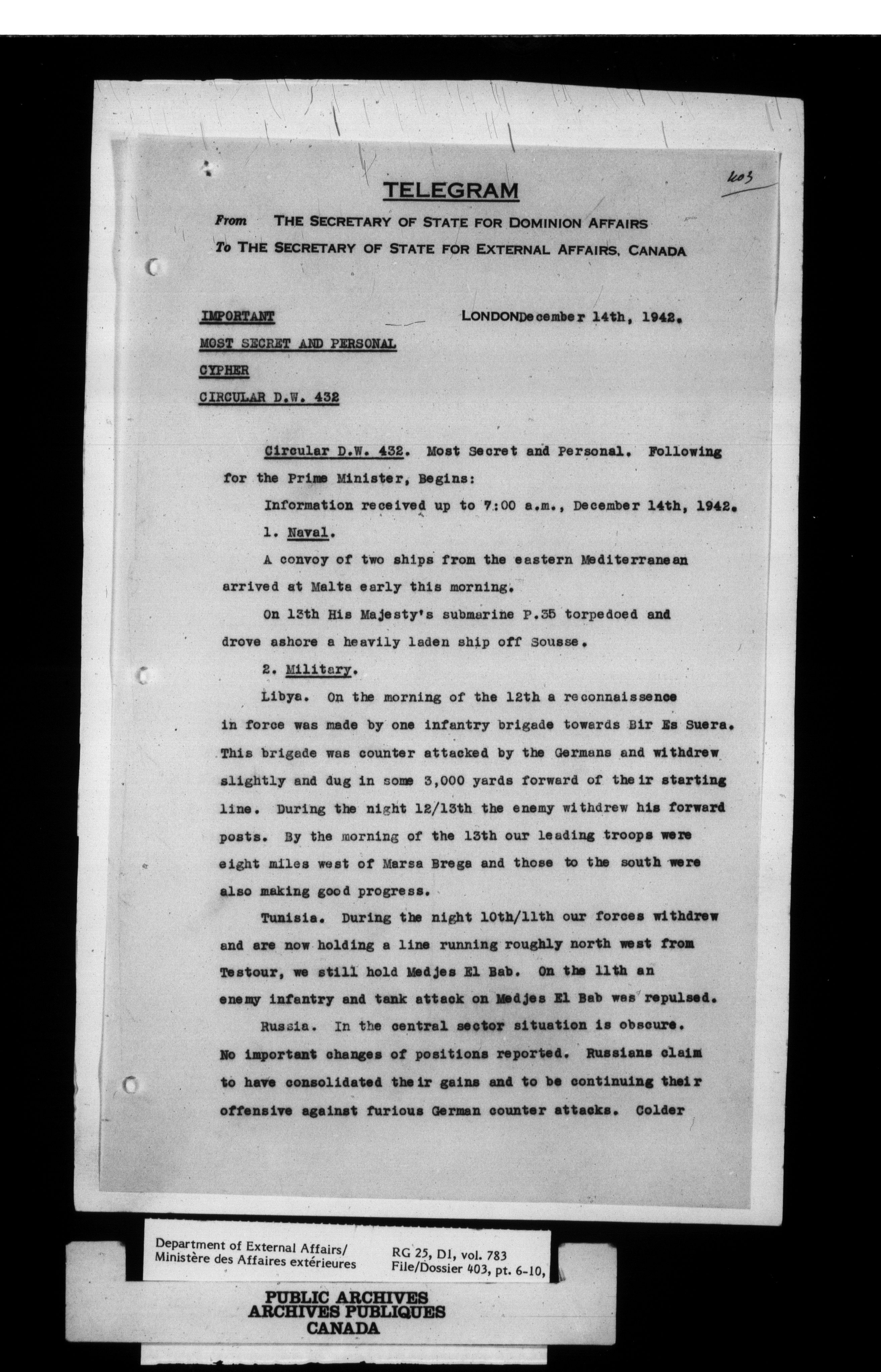 Department of External Affairs : Office of the Under-Secretary of State for External Affairs - 1798