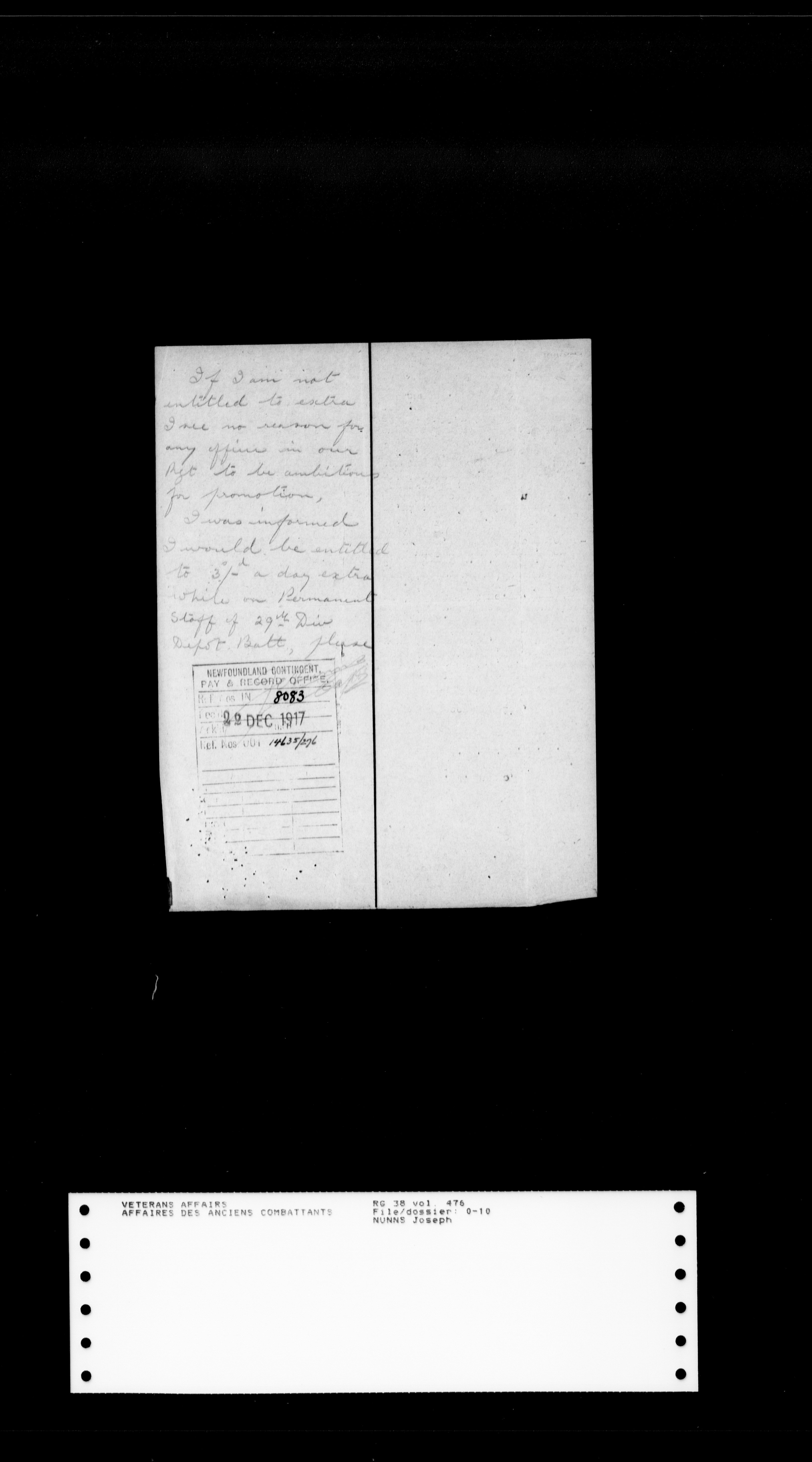 Military service files for members of the Royal Newfoundland Regiment and bandsmen and the Newfoundland Forestry Corps (1914-1919) - 18001